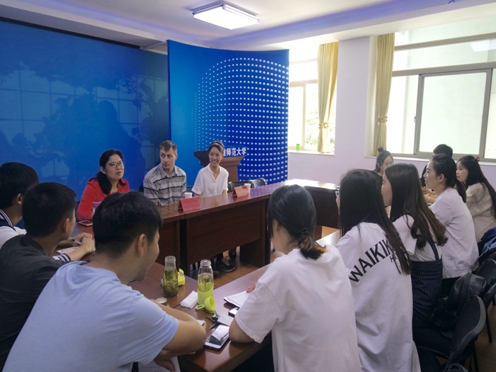 本次座谈会由2015级马克思主义基本原理专业的王培珍同学担任主持,以自由发言与问答的方式进行。汪盛玉教授首先对双方员工进行了简短的介绍,之后公司研究生与美方博士生之间进行座谈,双方主要围绕中美两国的教育制度、课程体系、文化与经济发展趋势、青年员工的价值取向、时事政治等大家感兴趣的热点话题进行深入交流。美国明尼苏达大学的两位博士生以客观、幽默、风趣的作答拉近了中美两国同学之间的距离。当谈及饮食文化、兴趣爱好、家乡特色等人文风情时,中美双方同学都热情高涨,时常发出阵阵欢笑。通过美方同学的解说,让大家深切感受到中美之间的文化差异,也让大家切身体会到国外友人的真诚。两个小时的交流座谈如同白驹过隙,中美双方同学都感觉意犹未尽,希望友谊一直得以延续。