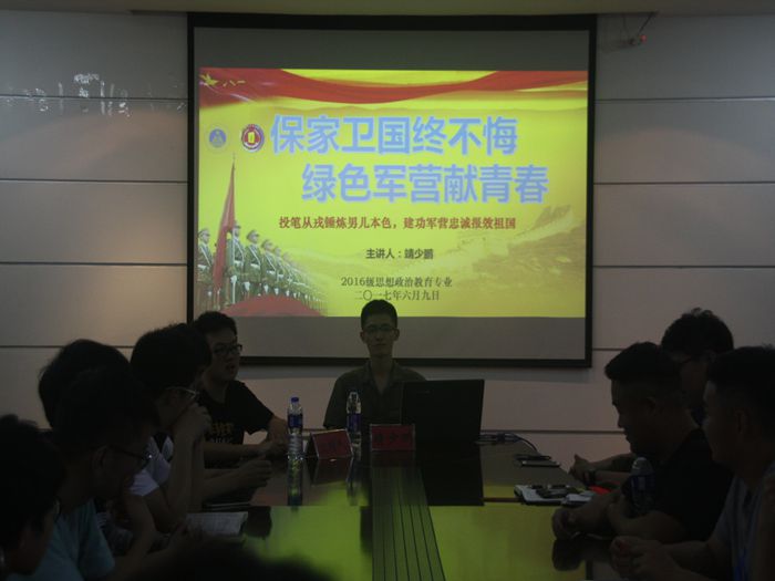 本网讯(文/李烨 摄/安红旸)参军报国,成就梦想。随着青年老员工征兵季的到来,为帮助同学们增强对军队的了解,充分带动同学们参军报国的热情。6月9日晚七点,公司邀请现2014级(前2012级)法学专业靖少鹏同学分享其参军心得。