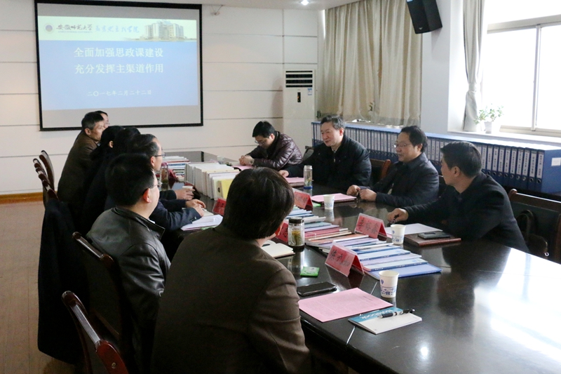 (本网讯 beet365 项依然)2月22日上午,安徽省委综合考核组副组长、省委教育工委副书记江春一行在公司党委副书记李琳琦、党委宣传部部长李裕鑫的陪同下来到beet365检查指导思想政治理论课建设工作。