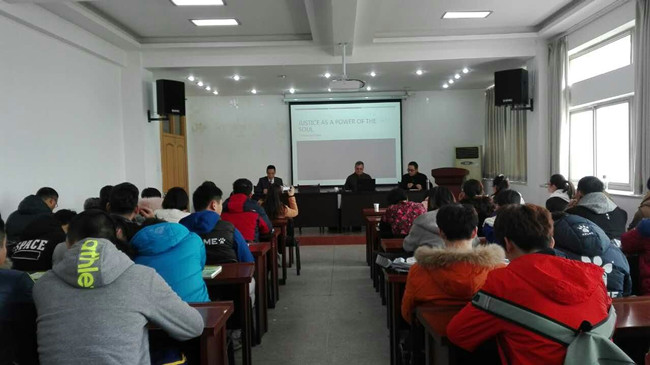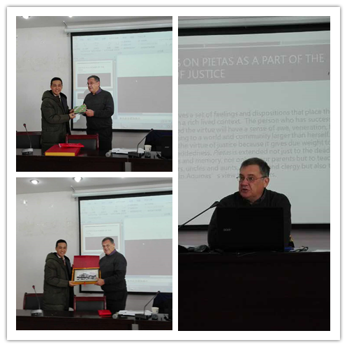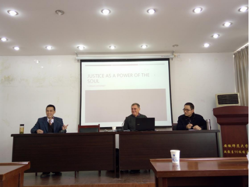 2017年2月21日上午9时,来自澳大利亚查尔斯达尔文大学Brian Mooney教授在学院五楼会议室作了题为《虔敬与正义》的精彩学术讲座。公司戴兆国教授主持讲座,陈旭东博士担任英文翻译,公司相关专业的教师以及全体研究生聆听了本次学术讲座。