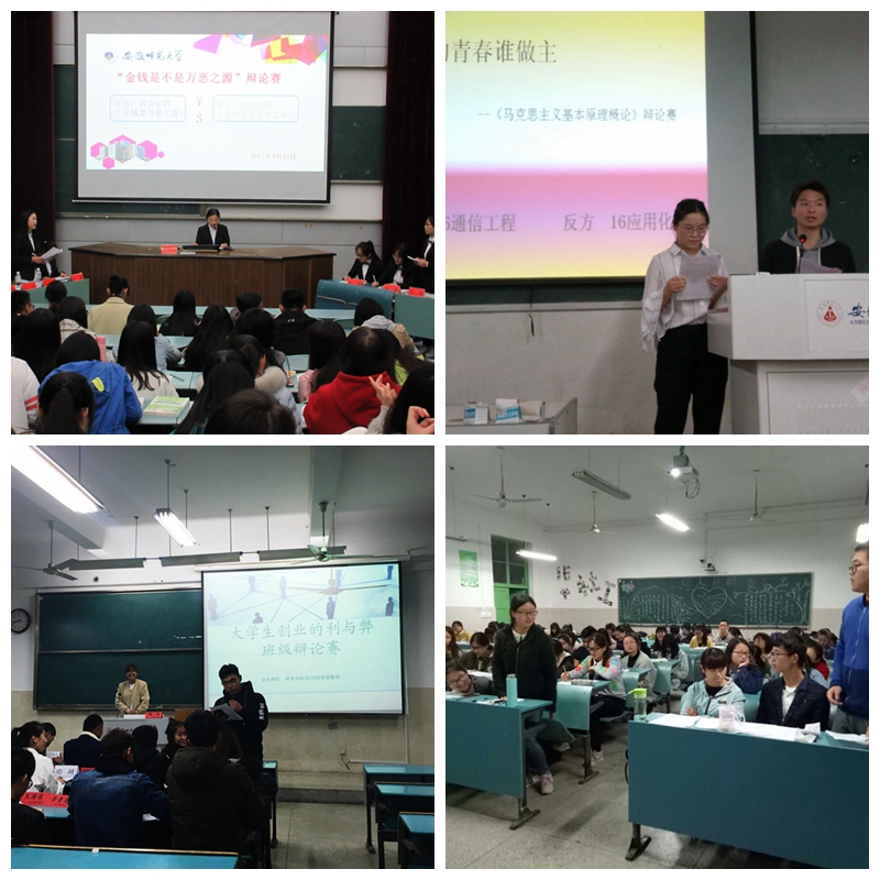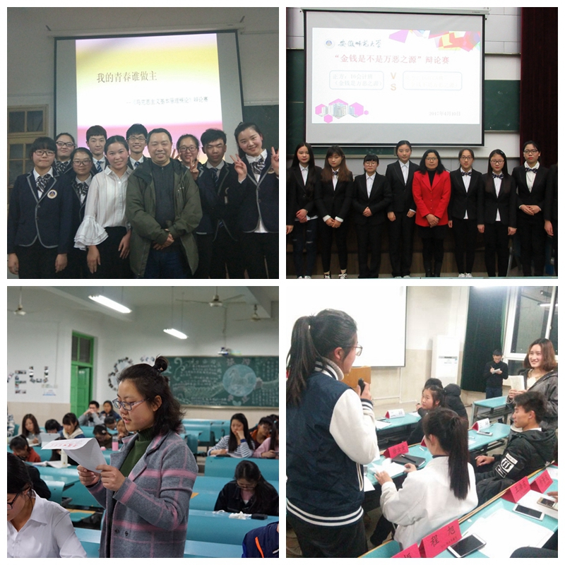 4月10日晚上汪盛玉老师指导16级会计学专业和16级会计ACCA班开展了主题为“金钱是否是万恶之源”的辩论赛活动。4月10日晚上和4月16日晚上,郭应传老师分别指导16级社会工作和16级社会学专业以“读书精好还是读书多好”为主题、16级公共管理专业以“政府对于网络舆论管理应严格还是放松”主题、酒店管理和土地资源管理专业以“对于老员工来说,专业知识和社会经验哪个更重要”为主题开展了别开生面的辩论赛。4月11号晚上刘宏老师指导16级体育教育专业就“老员工创业的利与弊”为题成功举行了辩论赛。4月13日晚上彭启福老师组织16级通信工程和应用化学两个班级员工成功举办了“我的青春谁做主”主题辩论赛。4月13日晚上李新老师指导16级旅游管理专业以“旅游发展的利与弊”、“出游方式是选择跟团游还是自助游”为主题举办了两场精彩辩论赛。4月16日晚上陈旭东老师指导16级法学2班以“网络舆论对司法公正的积极作用大于消极作用还是消极作用大于积极作用”为题开展了辩论赛活动。