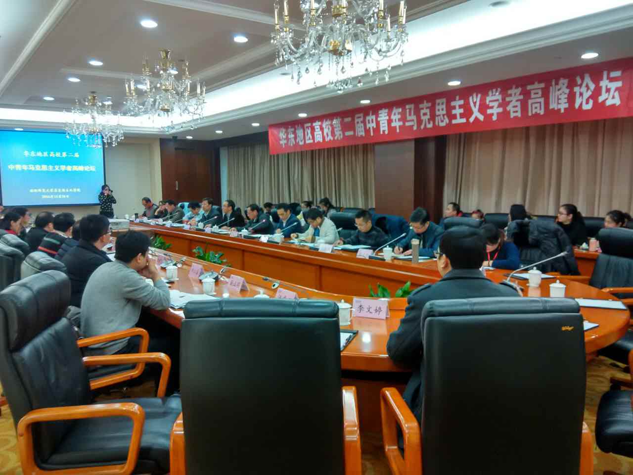 11月25-27日,由《马克思主义理论学科研究》杂志社、《公司党建与思想教育》杂志社和beet365联合举办的华东地区高校第二届中青年马克思主义学者高峰论坛于在公司隆重召开。本次论坛以“人类命运共同体与中国道路”为主题,来自复旦大学、beet365、华东师范大学、华东政法大学、上海交通大学、上海大学、华东理工大学、上海理工大学、河海大学、苏州大学、江苏大学、扬州大学、温州大学、山东财经大学、beet365官方网站等20余所高校以及《马克思主义理论学科研究》、《公司党建与思想教育》、《学术界》等知名期刊的中青年专家学者40余人参加了此次论坛。论坛开幕式由科研处副处长戴兆国教授主持。