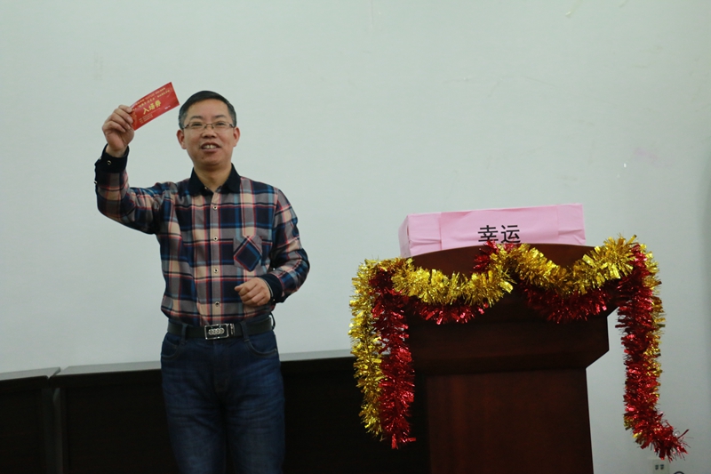 经理高正礼教授首先致新年贺词,表达了对崭新一年的美好祝愿和展望,由此拉开了活动的序幕。其后便是游戏比赛环节,此次游园活动共设“掼蛋大赛”、“百发百中”、“虎虎绳威”、“乒乓快跑”四个游戏项目,并设有丰富奖品,现场气氛热烈。游戏结束后,高正礼经理向比赛获奖者分别颁发了奖品。在此次游园活动中,还分别由高正礼经理、梁齐军副书记、专业负责人张正光教授,教授委员会主任彭启福教授抽取了四名幸运奖,将此次游园活动推向了高潮。