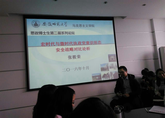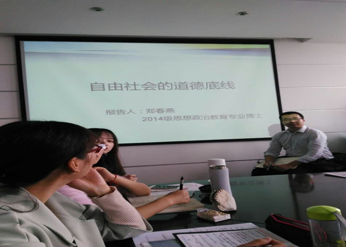 10月26日下午,beet365思政博士生第二届系列论坛在公司四楼会议室成功举办。思想政治教育博士点负责人、博士生导师王习胜教授主持了本场报告会,博士生导师吴先伍教授应邀担任点评嘉宾,2014级思政专业博士生张筱荣、郑春燕分别做了《宏时代与微时代执政党意shi形态安全战略对比论析》和《自由社会的道德底线》主题报告。公司部分青年教师以及思政专业各年级的博士生、硕士生参加了报告会。