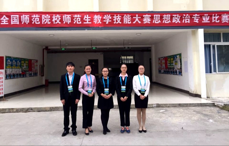 在接到大赛通知后,公司高度重视,立即举行院级选拔赛。通过选拔最后决定由2013级本科生胡银翠、2014级本科生陈枫和王淑梅、2015级本科生曹思琪和王诗茹五位同学参加本次大赛。参赛选手确定后,公司成立了由陶永华老师、戴家芳老师和芜湖县一中王琴老师组成的培训团队,对参赛选手进行了为期两个月的赛前训练。三位指导教师从教学设计的理念、教学课件的制作,到模拟授课的教态、语言、板书等,对选手进行了细致入微的、有针对性的指导。训练期间,政治公司高正礼经理、汪盛玉副经理、辅导员周楠老师先后多次看望、慰问参赛师生,与参赛师生沟通交流,帮助协调、解决实际问题。
