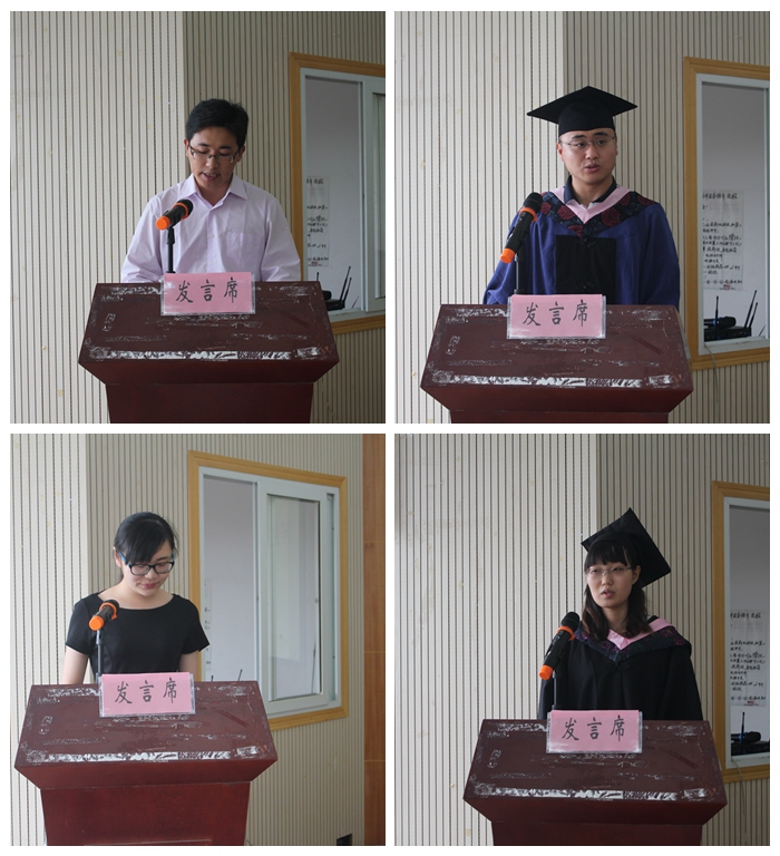 毕业典礼在庄严的国歌声中拉开序幕。公司经理高正礼教授代表公司向毕业生致辞,对毕业生们圆满完成学业表示了衷心的祝贺,并希望他们在毕业后坚持学习、开拓进取,以别样的风度走向成才发展之路。教师代表管月飞副教授表达了全院教师对毕业学子的关爱之情和殷切希望,希望他们在未来的道路上不断朝着自己的梦想迈进,并且“不论处境如何,始终保持心灵的自由思考”。在校生代表胡道俊、项依然表达了对学长学姐们的衷心感谢和祝福。毕业生代表云大清、吴文君回顾了在校期间的点滴往事,表达了毕业离别的心声以及对未来的期许。随后,副经理姚宏志教授、汪盛玉教授宣读学位证书授予决定,与会领导为全体毕业生颁发了毕业证书和学位证书。