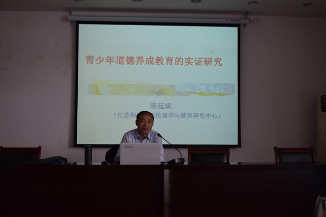 2016年5月14日上午九点,公司思想政治教育专业硕士点及伦理学与道德教育研究所邀请江苏师范大学博士生导师陈延斌教授在beet365五楼学术报告厅为公司硕士研究生举办了一场以“青少年道德养成教育的实证研究”为主题的学术报告。报告会由公司思想政治教育专业硕士生导师、伦理学与道德教育研究所所长赵平教授主持。