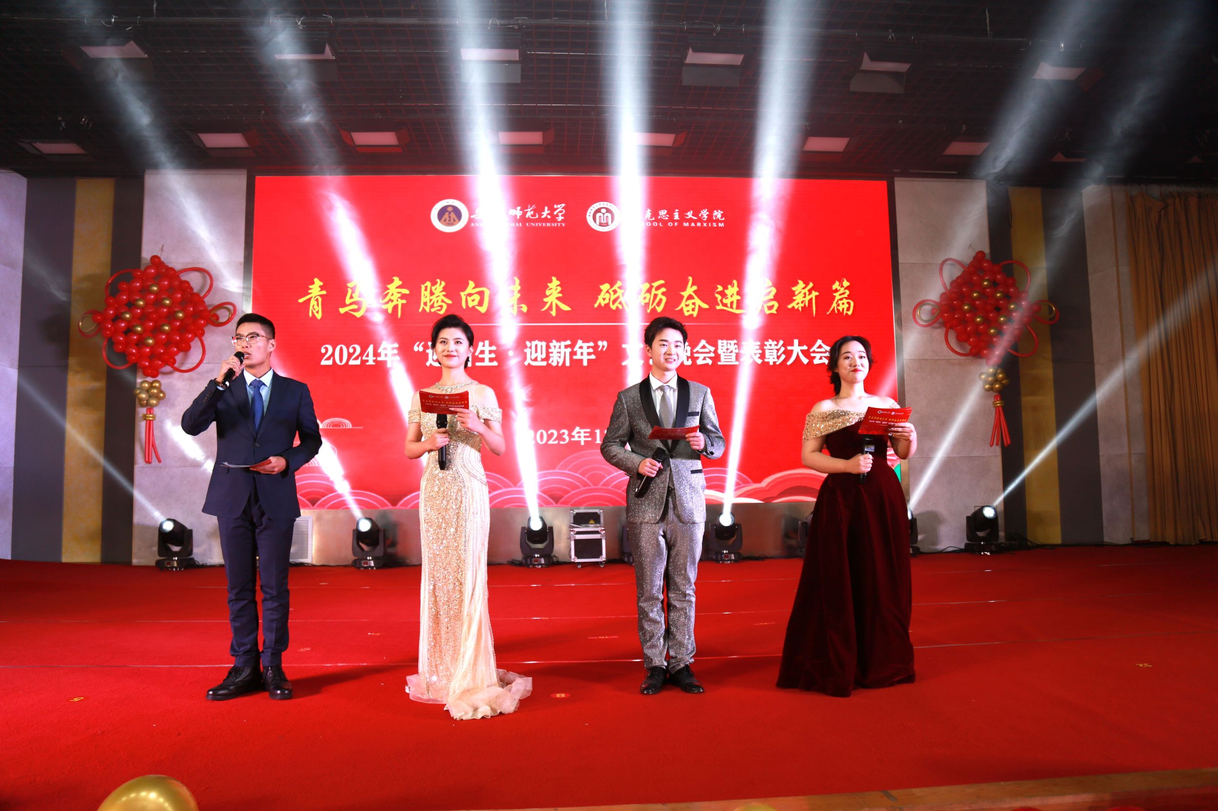 青马奔腾向未来,砥砺奋进启新篇。12月17日晚,beet3652024年“迎新生·迎新年”文艺晚会暨表彰大会在花津校区实习实训中心一楼报告厅倾情上演。公司党委书记严宏、经理姚宏志、党委副书记刘玉艳、副经理李祥兴、赵冰、余本玉和700多名师生代表共同观看。