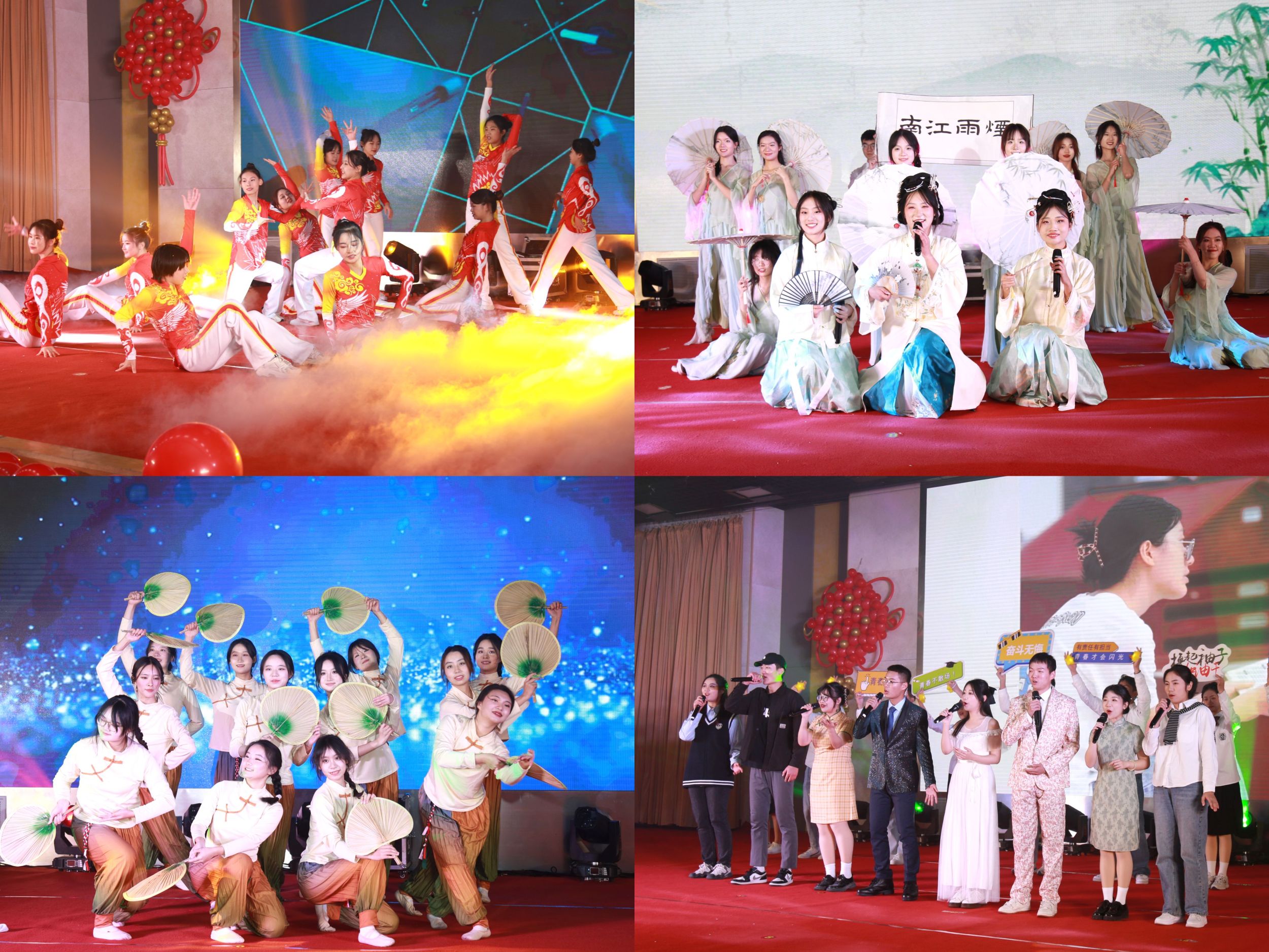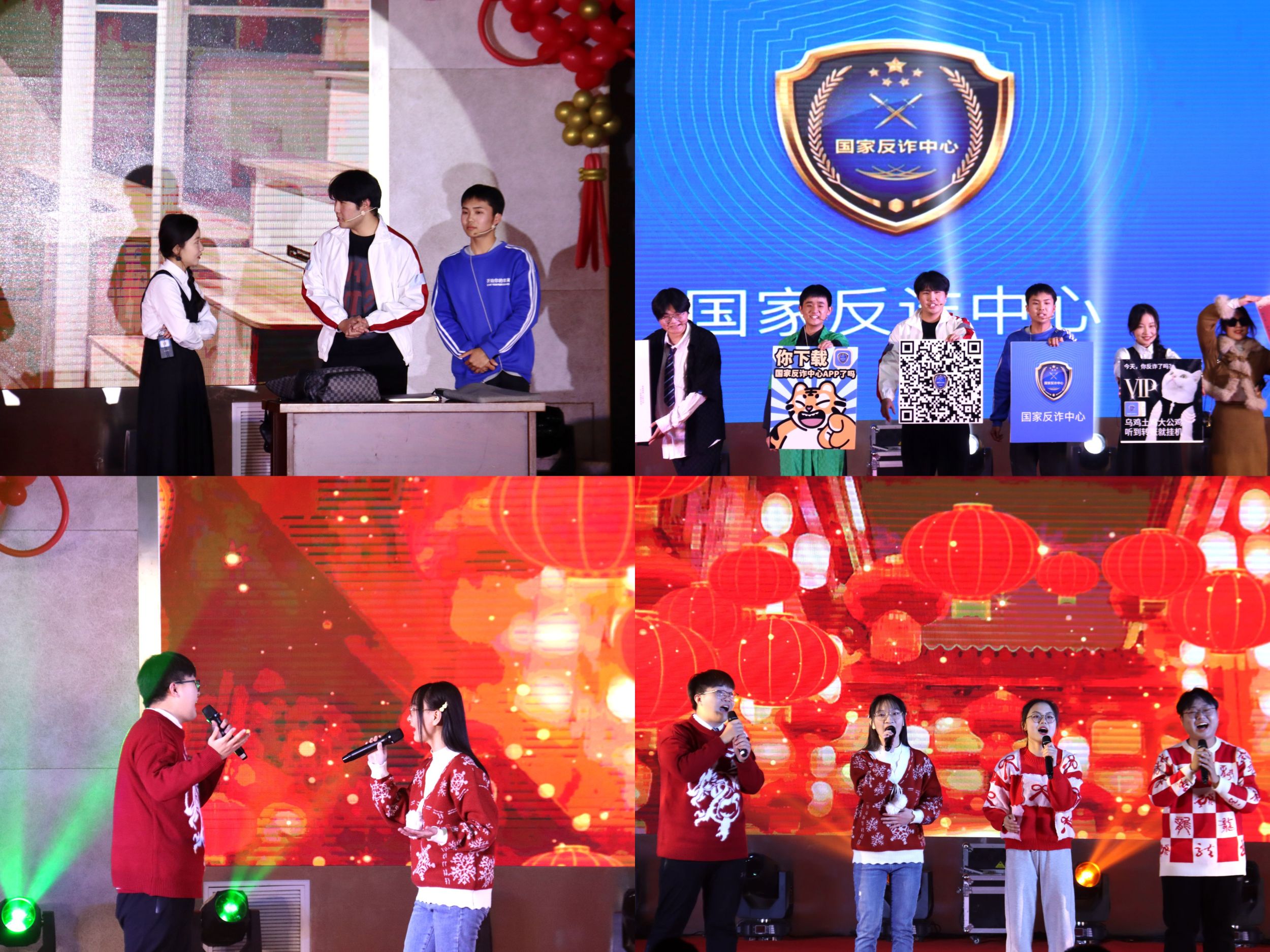 开场舞健美操《Lucky Strike》点燃观众热情,拉开晚会序幕。教工节目《红旗飘飘》《锁麟囊·春秋亭》《平凡之路》《我们走在大路上》《在中国大地上的报道》掌声不断,瞬间拉进了师生的距离。歌伴舞《兰亭烟雨》、舞蹈《风吹稻花香两岸》、大合唱《如愿》独具特色,精彩表演令人动容。舞蹈串烧《护花使者》《青苹果乐园》《爱你》、歌曲串烧《年代音乐会》、歌伴舞《奔跑的青春》等节目洋溢着青春活力。相声《你问我答》、小品《你的模样》《新生防诈指南》演员生动演绎,在带来欢乐的同时也引人深思。