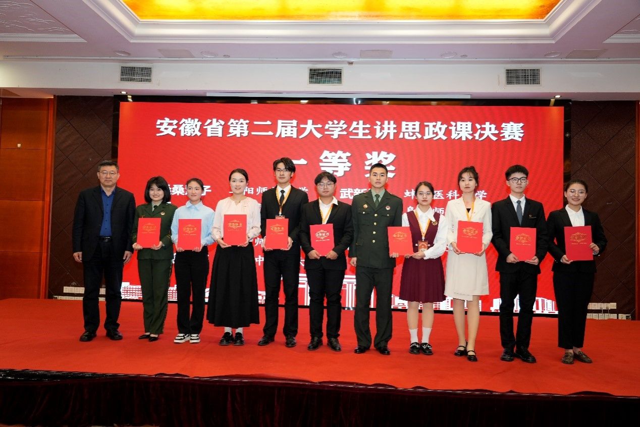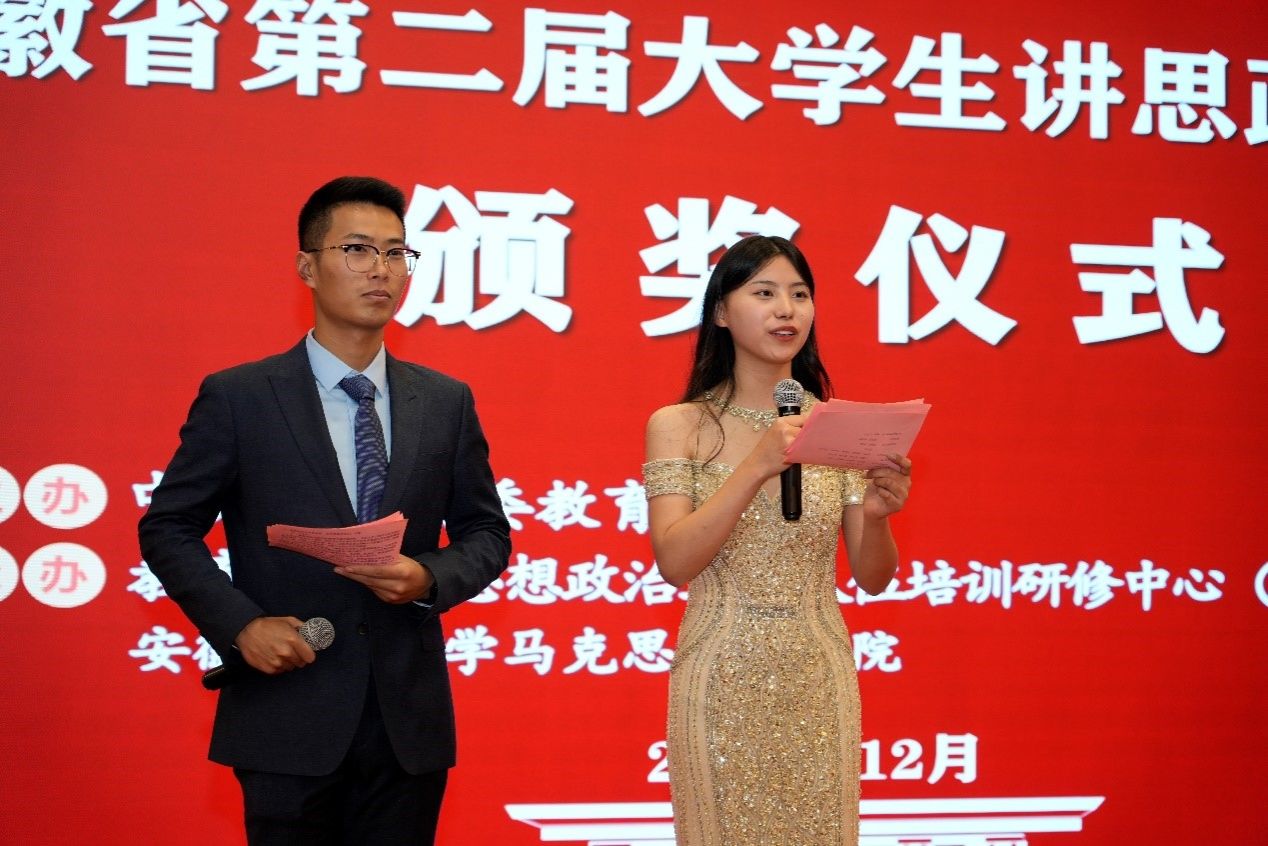 比赛结束后,举行了颁奖仪式。省委教育工委原副书记、省教育厅一级巡视员、省教育厅机关党委书记王佩刚,省教育厅思想政治工作处处长王后林,公司党委副书记周旭,安徽省高校思政课教职委主任王先俊教授,全省高校思政课教职委副主任孙晓峰教授、徐柳凡教授,本次比赛专家评委和公司领导班子成员出席颁奖仪式。全体参赛选手、指导教师参加仪式。