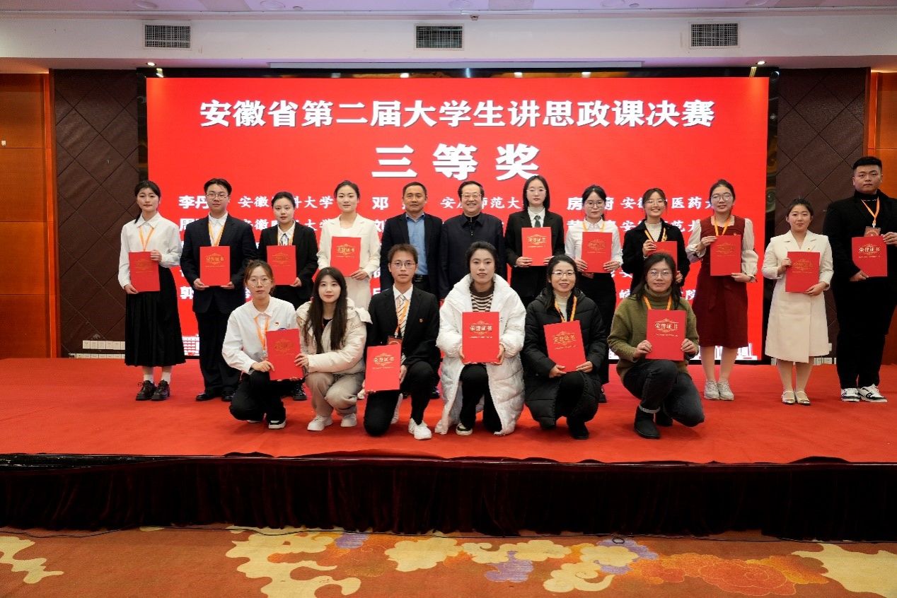 为深入学习贯彻习近平新时代中国特色社会主义思想,落实习近平总书记关于深化思政课改革创新的重要指示精神,推进“大思政课”建设,发挥思政课立德树人关键课程作用。12月21日,由中共安徽省委教育工委主办,教育部高校思想政治工作队伍培训研修中心(beet365官方网站)、beet365承办的,安徽省第二届老员工讲思政课决赛在公司举行。来自全省22所本科院校、42支参赛队伍参加决赛。经过激烈角逐,本次比赛共产生特等奖6名、一等奖9名、二等奖12名和三等奖15名。公司汪梦苇同学斩获特等奖,李睿青同学荣获一等奖,黄婉清同学获得三等奖。