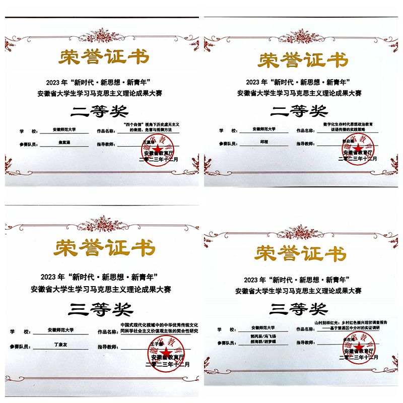 本次比赛,公司高度重视,早在8月就积极组织员工参赛,通过宣传动员、公司申报、专家评审、学术查重、后期打磨等方式,选送公司预赛中获得一等奖的10件作品参加省赛“论文、调研报告、微视频”三个项目的角逐。最终,陈雪燕、相满意、王志远、张露露、张书祺、梅兰葶同学共同创作的《从独自绽放到万人寻踪:一朵兰花的故事》获微视频一等奖;杨磊鑫同学的作品《何故、何为、何以:坚持“马克思主义基本原理同中华优秀传统文化相结合”的前提性思考》、胡忠婷同学的作品《新时代老员工爱国主义情感培育的价值意蕴与实践路径》荣获论文类一等奖;焦紫涵同学的作品《“四个自信”视角下历史虚无主义的表现、危害与抵御方法》、邱程同学的作品《数字化生存时代思想政治教育话语传播的实践策略》荣获论文类二等奖;丁泉友同学的作品《中国式现代化视域中的中华优秀传统文化同科学社会主义价值观主张的契合性研究》荣获论文类三等奖;郭丙辰、冯飞扬、郝海群、胡梦蝶同学的作品《山村别样红光:乡村红色振兴现状调查报告——基于繁昌区中分村的实证调研》获调研报告类三等奖。
