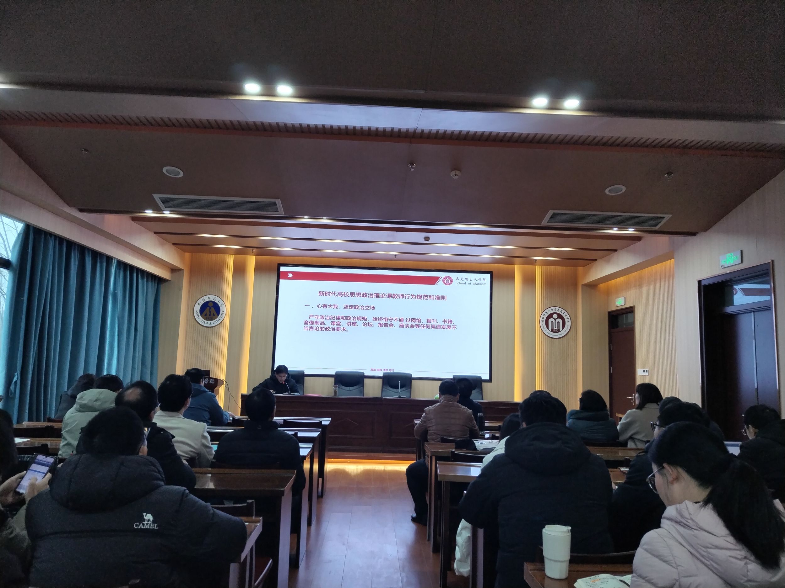 严宏领学了习近平总书记近期重要讲话精神,从五个方面简要分点叙述,阐释2023年全面从严治党主要开展的工作,并深化对“第二个答案”的认识,倡导全体教职工要深入学习新时代新征程反腐败斗争的总体要求和具体举措,严肃党性党风党纪教育,端正工作作风,提升教学本领。结合工作实际,他重点解读了《新时代高校思想政治理论课教师行为规范和准则》,倡导全体教师要以此项行为规范准则为案头书,时刻比对,积极进取,努力成为员工尊重认可的“大先生”。