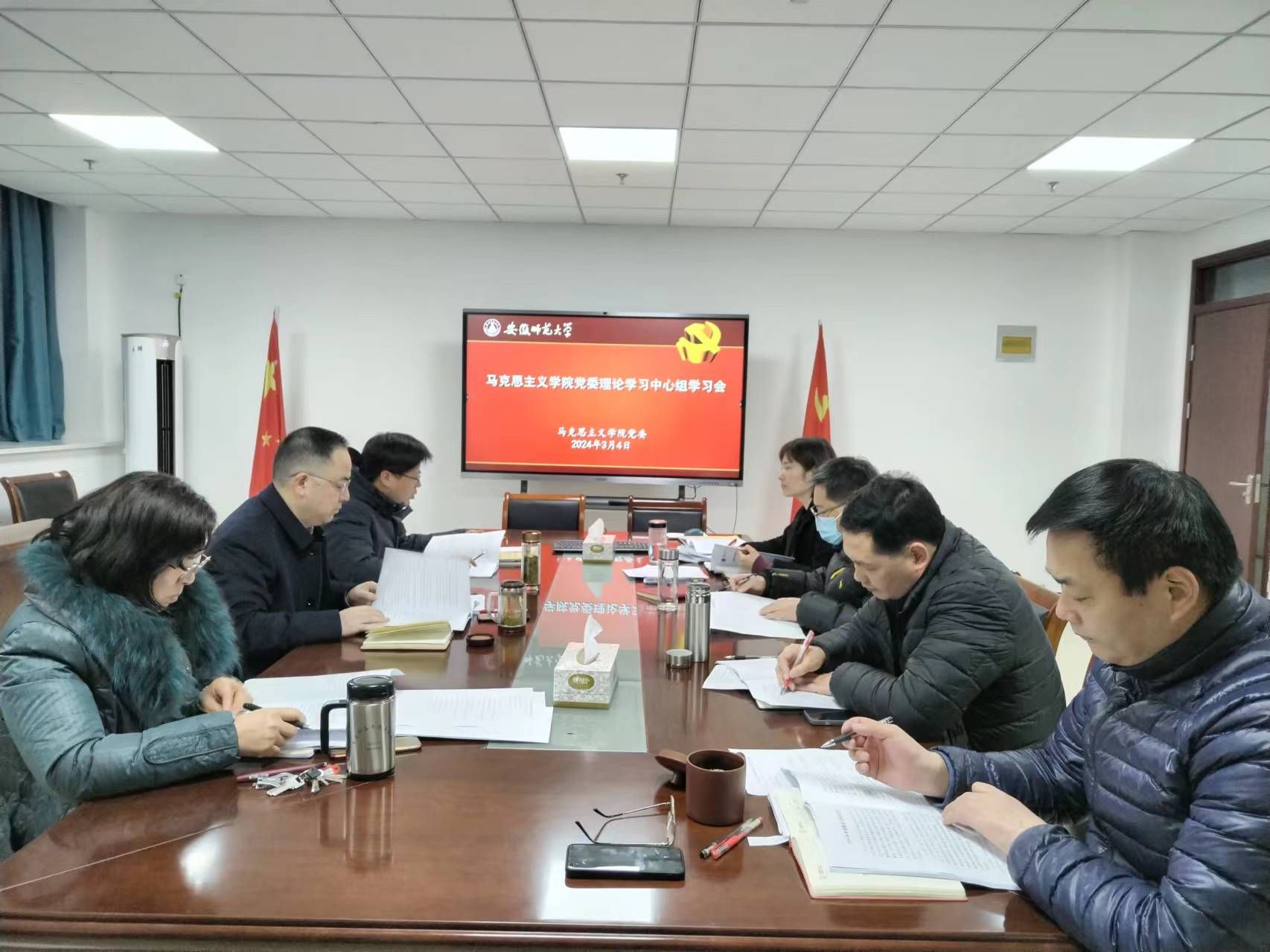 会上,与会人员以观看视频的方式学习了习近平总书记在中央政治局第十一次集体学习时的讲话以及在京召开的学习贯彻习近平新时代中国特色社会主义思想主题教育总结会议精神。随后,党委各委员分别领学了习近平在中央全面深化改革委员会第四次会议上的讲话、习近平在“国家工程师奖”首次评选表彰之际作出的重要指示、全省科技创新大会会议精神、2024年全省教育工作会议精神、《党史学习教育工作条例》、《中国共产党巡视工作条例》。最后,党委领导班子集体观看了全国政协十四届二次会议开幕会直播盛况,大家认真听取了有关工作报告。