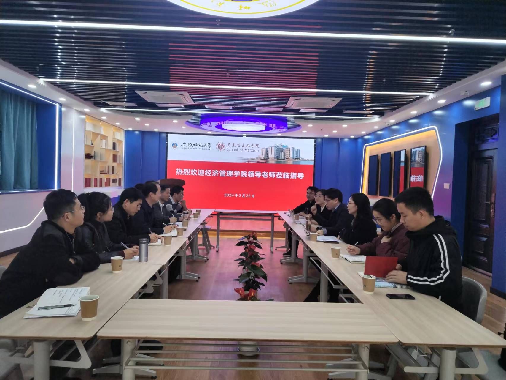 会上,严宏书记首先对经管公司领导老师的到来表示欢迎,对公司党支部设置情况做简要介绍。随后,杨希老师以思政教工党支部严格落实“以党建引领事业”入手,从五个方面详细介绍支部建设情况,并分享了支部开展教师集体备课、学术工作坊等特色活动的经验和方法。沈燕培老师以“新支部新特色”为主题介绍党支部建设的相关情况和取得的成绩,分享了支部狠抓“制度保障事业”促进青年教师成长的经验。孙亮老师重点介绍了党史教工党支部建设中教学与科研、理论与实践、提升自我与服务社会“三个相结合”的开展情况。