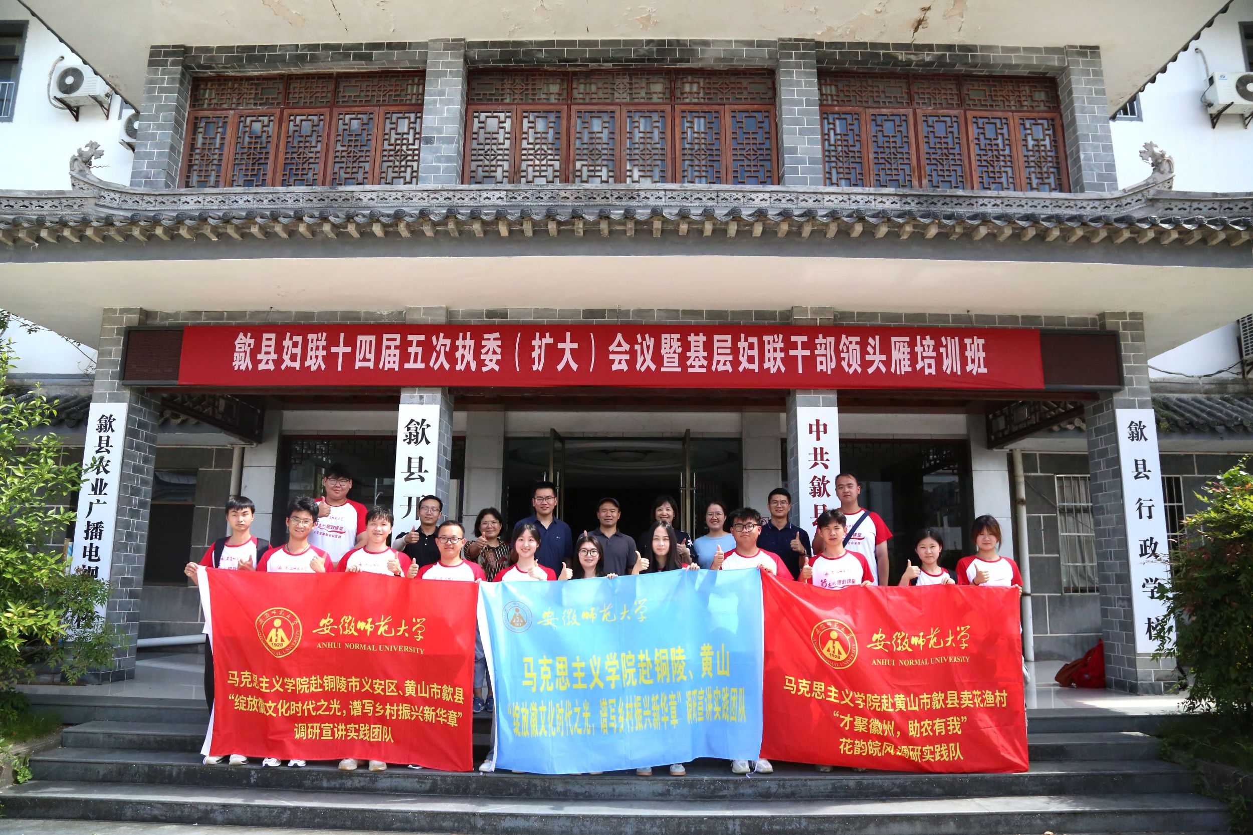 座谈会上,刘玉艳和李晓东签署地校共建协议;汪盛玉和凌华兵共同为老员工实践基地揭牌。汪盛玉在总结讲话中对歙县有关部门给予社会实践的帮助表示感谢,对在歙实践团队的实践成效给予肯定,同时,她表示将发挥全国重点beet365的社会服务职能,鼓励教师和员工在“三下乡”实践中感受家乡发展所需,投身乡村振兴建设。