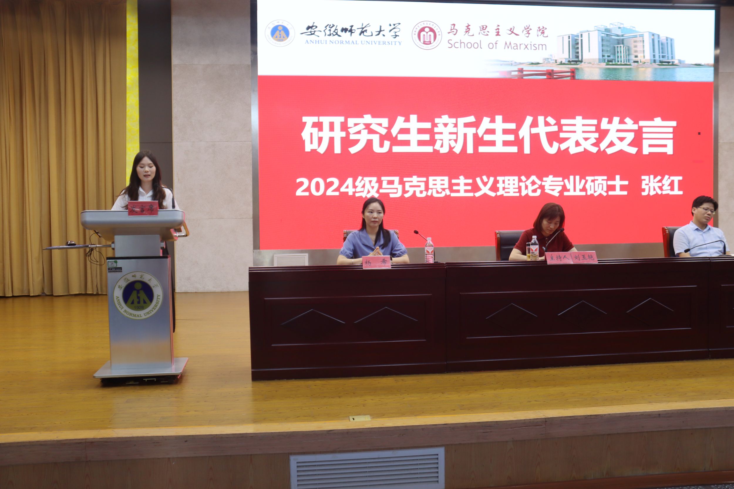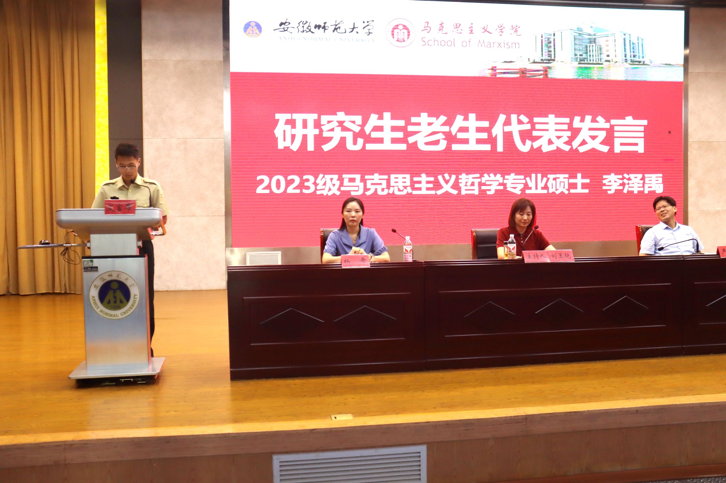 思想政治教育专业2024级本科生孙争妍以奋斗为主题,提倡实践之美,鼓舞同学们做一个知行合一,经世致用的奋斗者。思想政治教育专业2022级本科生郭健民从个人经历出发,阐释了团结的重要性,鼓励同学们学会坚持和自信。2024级马克思主义理论专业硕士研究生张红倡导同学们做马克思主义的坚定信仰者、踏实求索者以及有力践行者,并希望同学们坚持初心,躬身实践。2023级哲学专业硕士研究生李泽禹回顾了自己的大学奋斗时光,希望同学们珍惜时间,并鼓励同学们做到将个人理想与国家命运紧密相连。