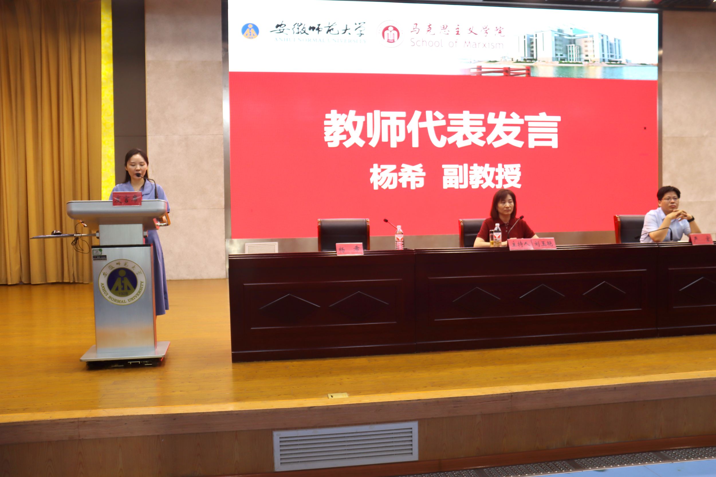 杨希老师进行了充满温情的发言。她结合个人的成长经历,期望同学们能够成为学习者、管理者、思想者以及奋斗者,在追求个人理想过程中,争做民族栋梁、强国先锋,用奋斗注脚最美好、最青春的大学时光。