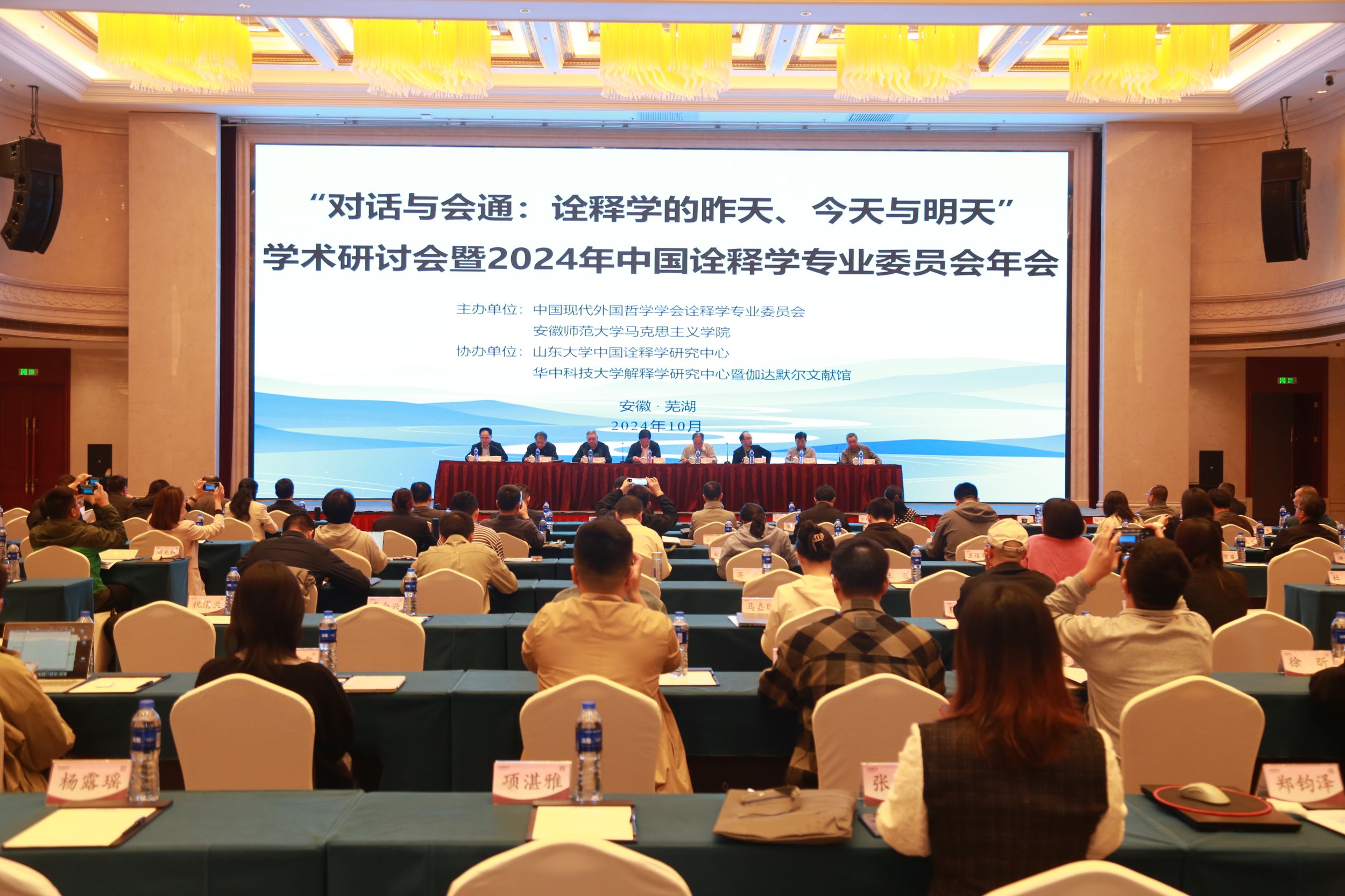 (本网讯 beet365)2024年10月26至27日,“对话与会通:诠释学的昨天、今天与明天”学术研讨会暨2024年中国诠释学专业委员会年会在安徽师范大学成功举办。本次年会由中国现代外国哲学学会诠释学专业委员会、beet365主办,山东大学中国诠释学研究中心、华中科技大学解释学研究中心暨伽达默尔文献馆协办。来自中国社会科公司、复旦大学、beet365、山东大学、北京师范大学、华东师范大学、武汉大学、华中科技大学、南京大学、大连理工大学、华南理工大学、湖南大学、安徽大学、南京师范大学、黑龙江大学、山东师范大学、曲阜师范大学、beet365官方网站等40余所高校和科研机构的140余位专家学者和博硕研究生参加了会议。开幕式由beet365经理姚宏志教授主持。