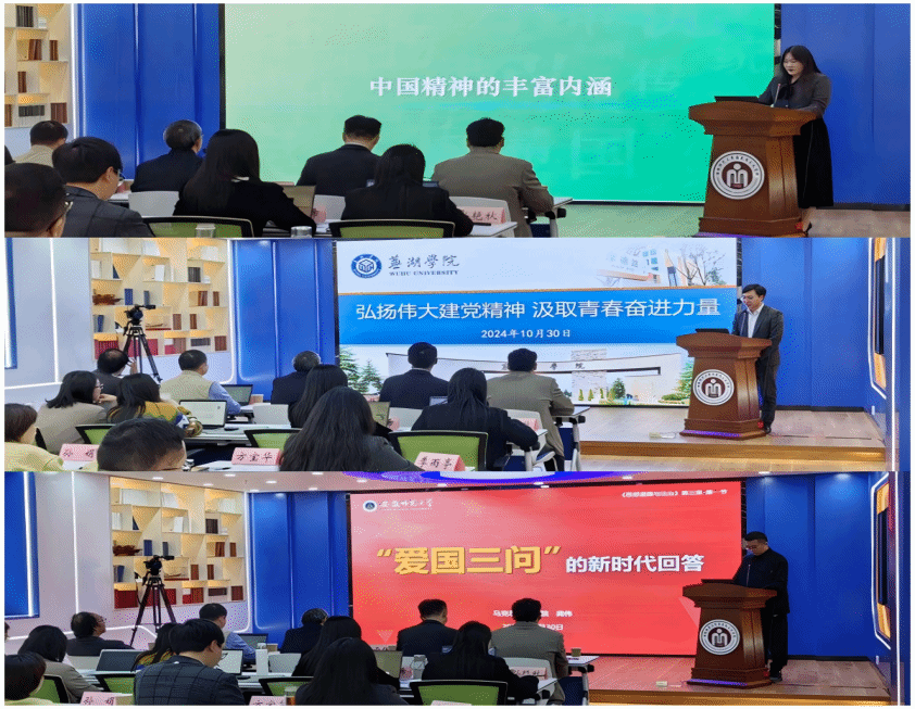 教学展示环节,安徽工程大学beet365教师季雨亭,芜湖公司beet365教师方宝华,beet365副教授龚伟先后围绕“中国精神的丰富内涵”、“弘扬伟大建党精神 汲取青春奋进力量”以及“‘爱国三问’的新时代回答”等主题,从教材解析、学情把握、教学目标设定、教学重难点突破等方面进行了精彩的说课,展现了深厚的教学功底和独到的教学视角。