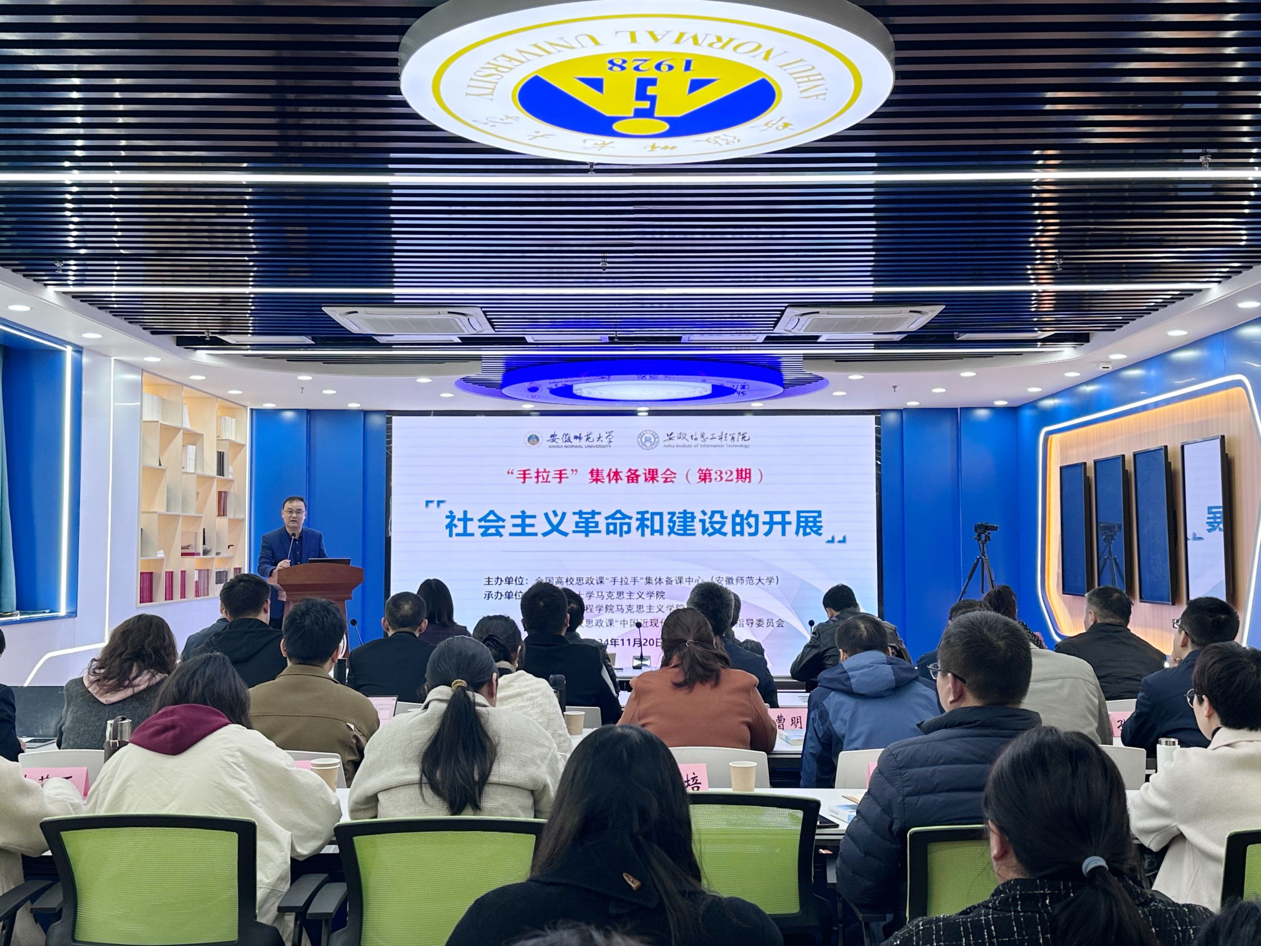 (本网讯 beet365)11月20日下午,由全国高校思政课“手拉手”集体备课会中心(beet365官方网站-安徽省)主办,安徽省高等公司思想政治理论课教学指导委员会“中国近现代史纲要”分教指委、beet365与安徽信息工程公司beet365共同承办的第32期“手拉手”集体备课会在beet365情景模拟实验室、教育部集体备课中心“云上大练兵”平台线上线下同步举行。
