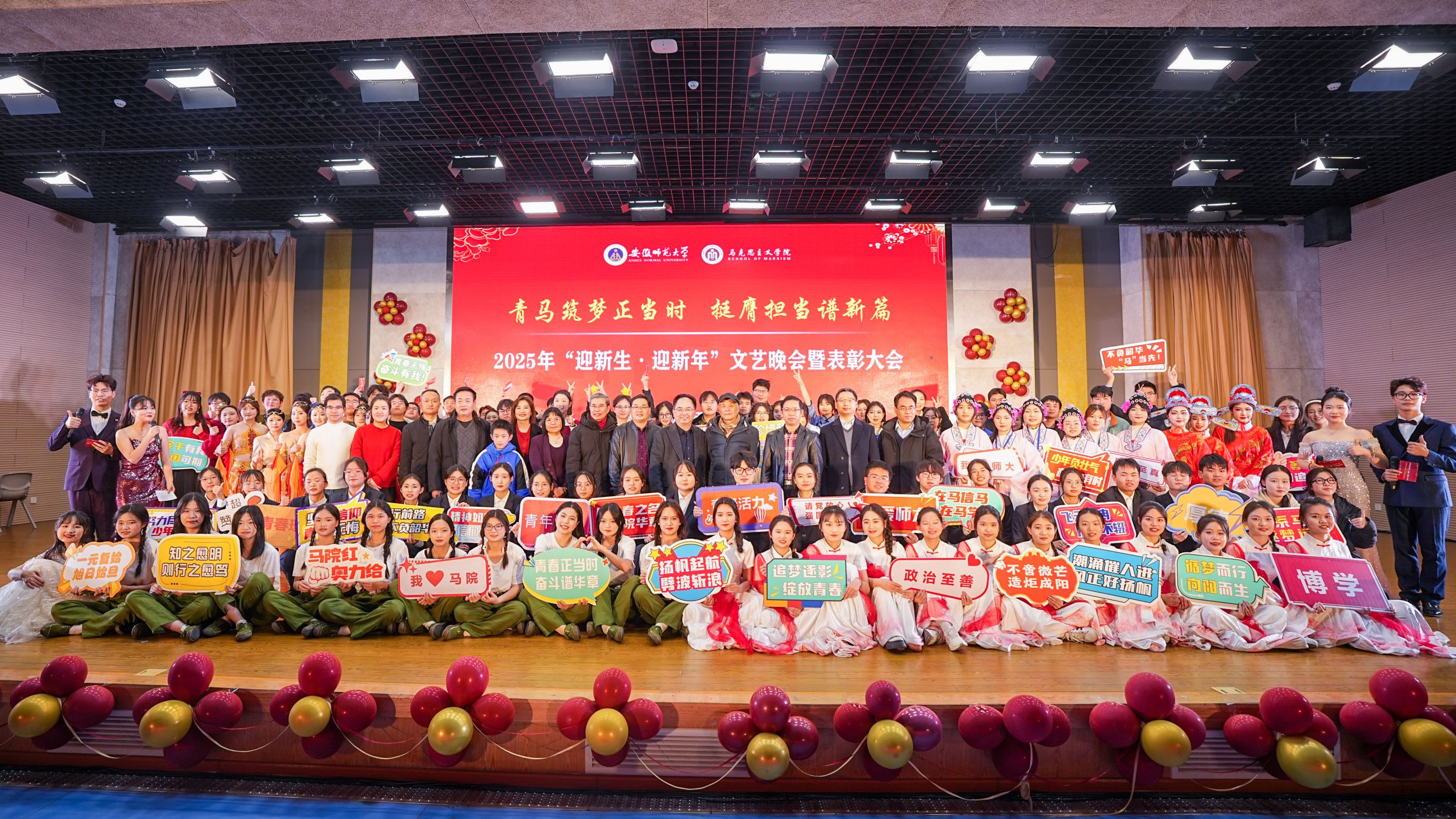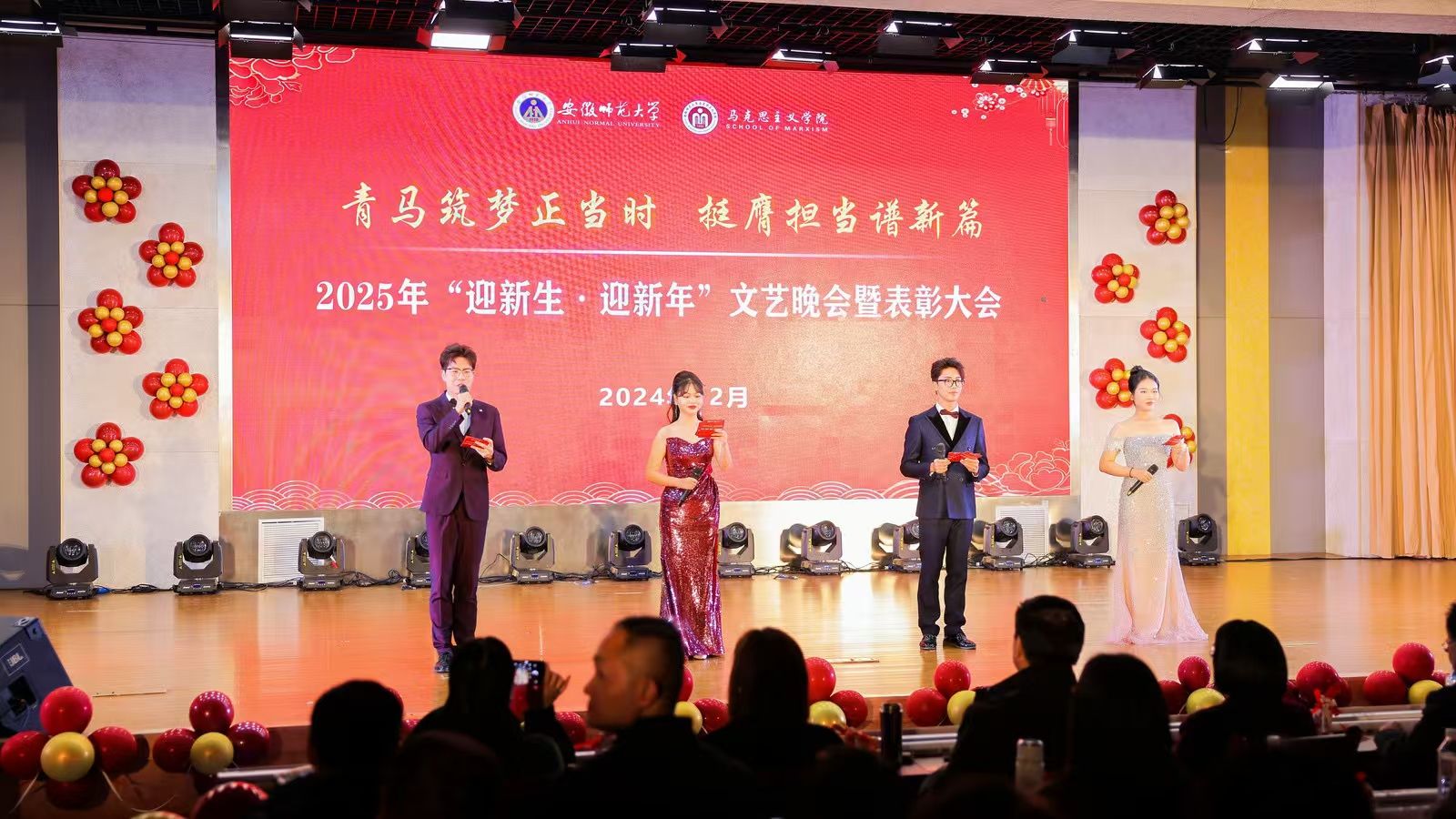 青马筑梦正当时,挺膺担当谱新篇。12月8日晚,beet3652025年“迎新生·迎新年”文艺晚会暨表彰大会在花津校区实习实训中心一楼报告厅倾情上演。公司经理姚宏志,党委副书记刘玉艳,副经理汪盛玉、李祥兴、赵冰、余本玉和700余名师生代表共同观看。