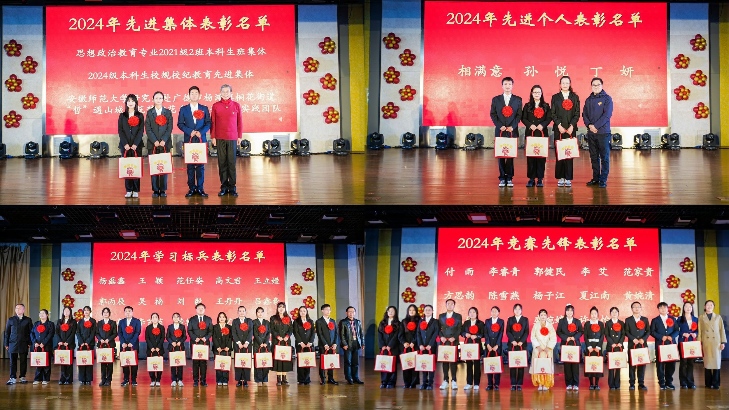会上,还对党建、科研、教学及实践育人等方面表现突出师生进行了隆重的表彰。出席颁奖大会的领导老师分别为2024年先进集体和先进个人颁奖。