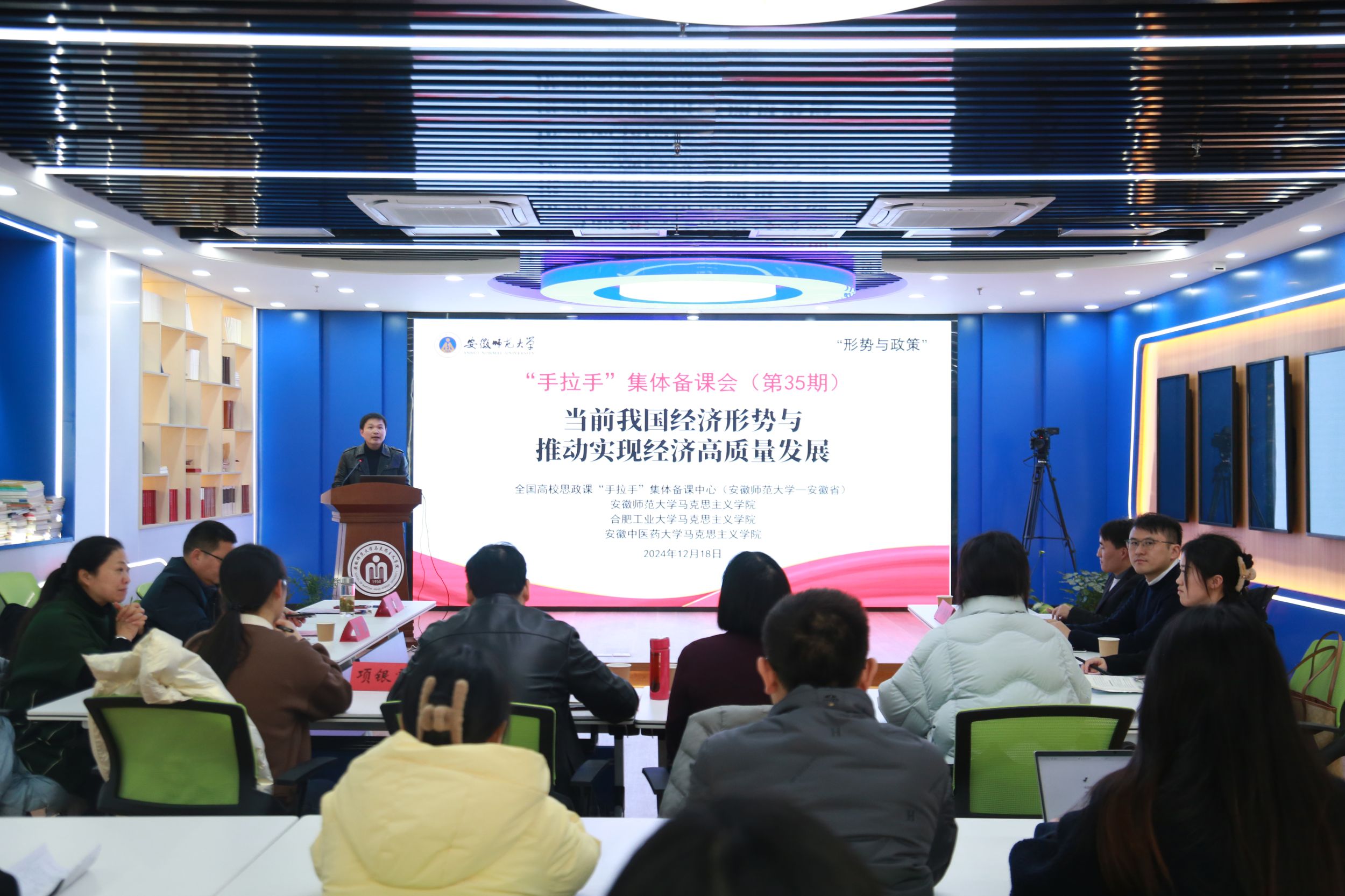 12月18日下午,由全国高校思政课“手拉手”集体备课会中心(beet365官方网站-安徽省)主办,beet365、合肥工业大学beet365、安徽中医大学beet365共同承办的第35期“手拉手”集体备课会在beet365情景模拟实验室、教育部集体备课中心“云上大练兵”平台线上线下同步举行。