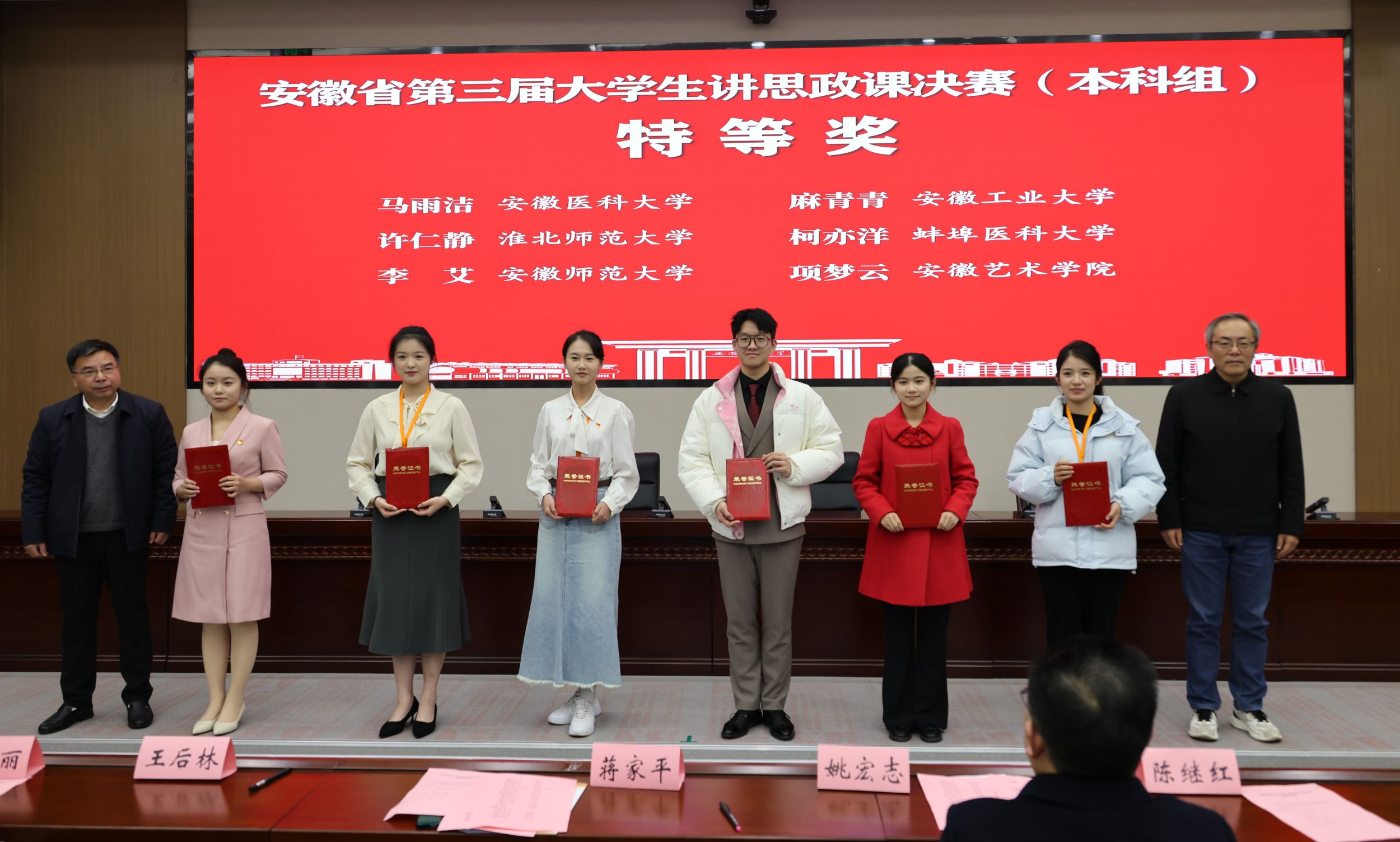 比赛结束后举行了颁奖仪式。beet365官方网站党委书记蒋家平,安徽省教育厅思政处处长王后林,安徽省教育厅二级主任科员万丽丽,南京大学beet365教授陈继红,南京师范大学beet365教授王磊,南京医科大学beet365副经理、教授陶林,武汉大学beet365副经理、副教授陈世锋,上海交通大学beet365副教授孔德猛,beet365经理姚宏志,本次比赛专家评委出席颁奖仪式。全体参赛选手、指导教师参加颁奖。