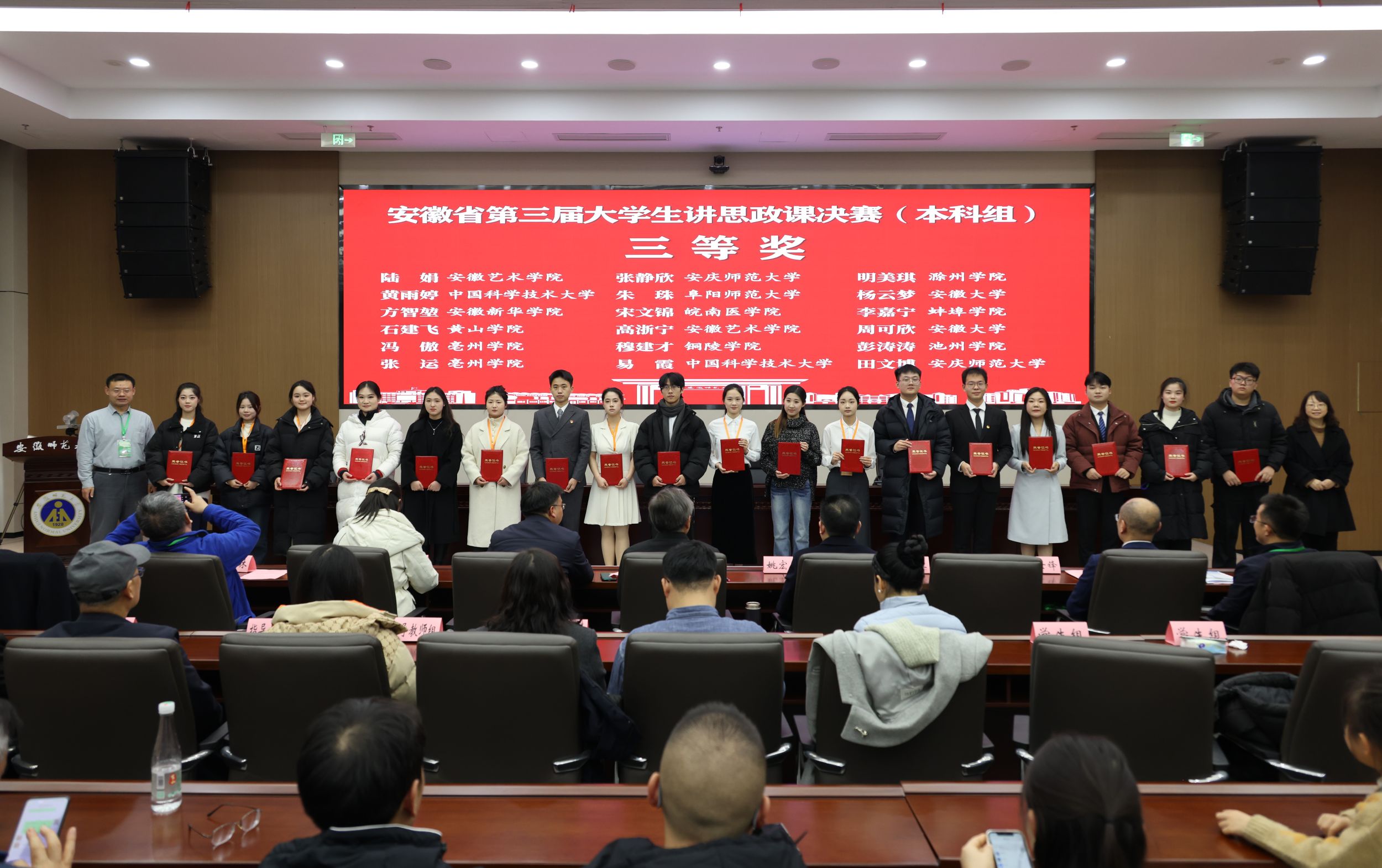 为深入学习贯彻习近平总书记对公司思政课建设的重要讲话和重要指示批示精神,全面落实新时代公司思政课建设推进会精神,深化思政课改革创新,12月25日,由中共安徽省委教育工委主办,教育部高校思想政治工作队伍培训研修中心(beet365官方网站)、beet365承办的安徽省第三届老员工讲思政课决赛在公司举行。来自全省30所本科院校、45支参赛队伍参加决赛。经过激烈角逐,本次比赛共产生特等奖6名、一等奖8名、二等奖13名和三等奖18名。公司beet365李艾同学斩获特等奖,音乐公司王睿仪同学斩获一等奖。