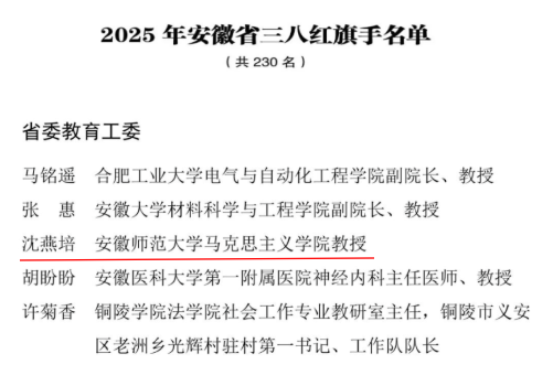 3月6日,安徽省纪念“三八”国际妇女节115周年暨表彰大会在合肥举行,省委常委、组织部部长孙红梅出席并讲话。公司沈燕培教授荣获2025年度安徽省三八红旗手荣誉称号并应邀参会。