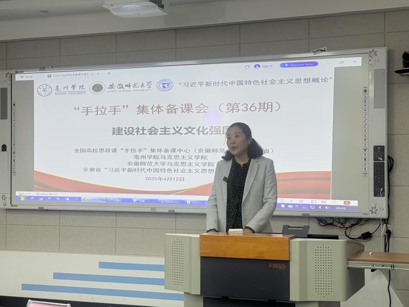 4月12日上午,由全国高校思政课“手拉手”集体备课会中心(beet365官方网站-安徽省)主办,亳州公司beet365、beet365与安徽省《习近平新时代中国特色社会主义思想概论》分教指委共同承办的第36期“手拉手”集体备课会在亳州公司高清录播教室线上线下同步举行。