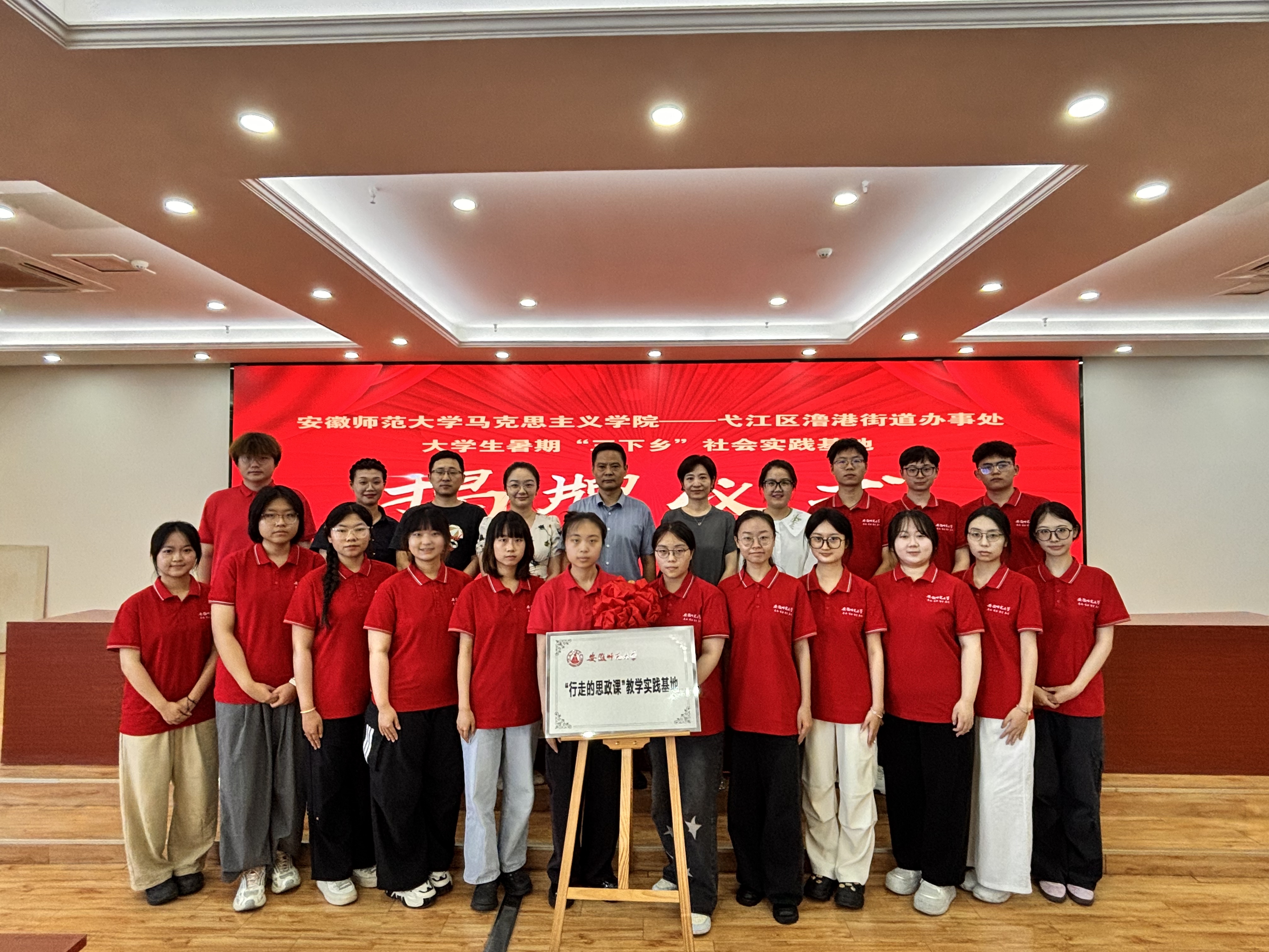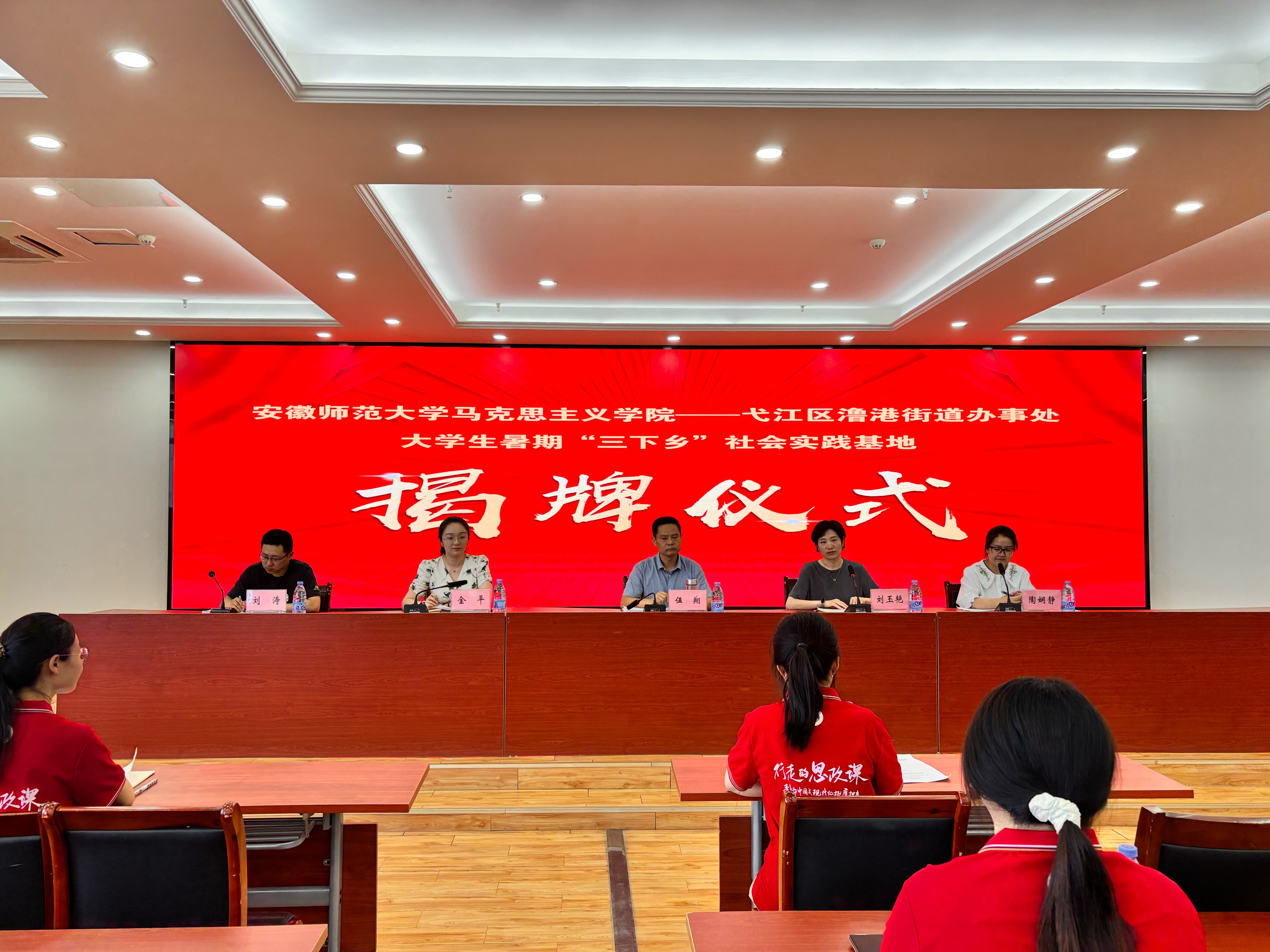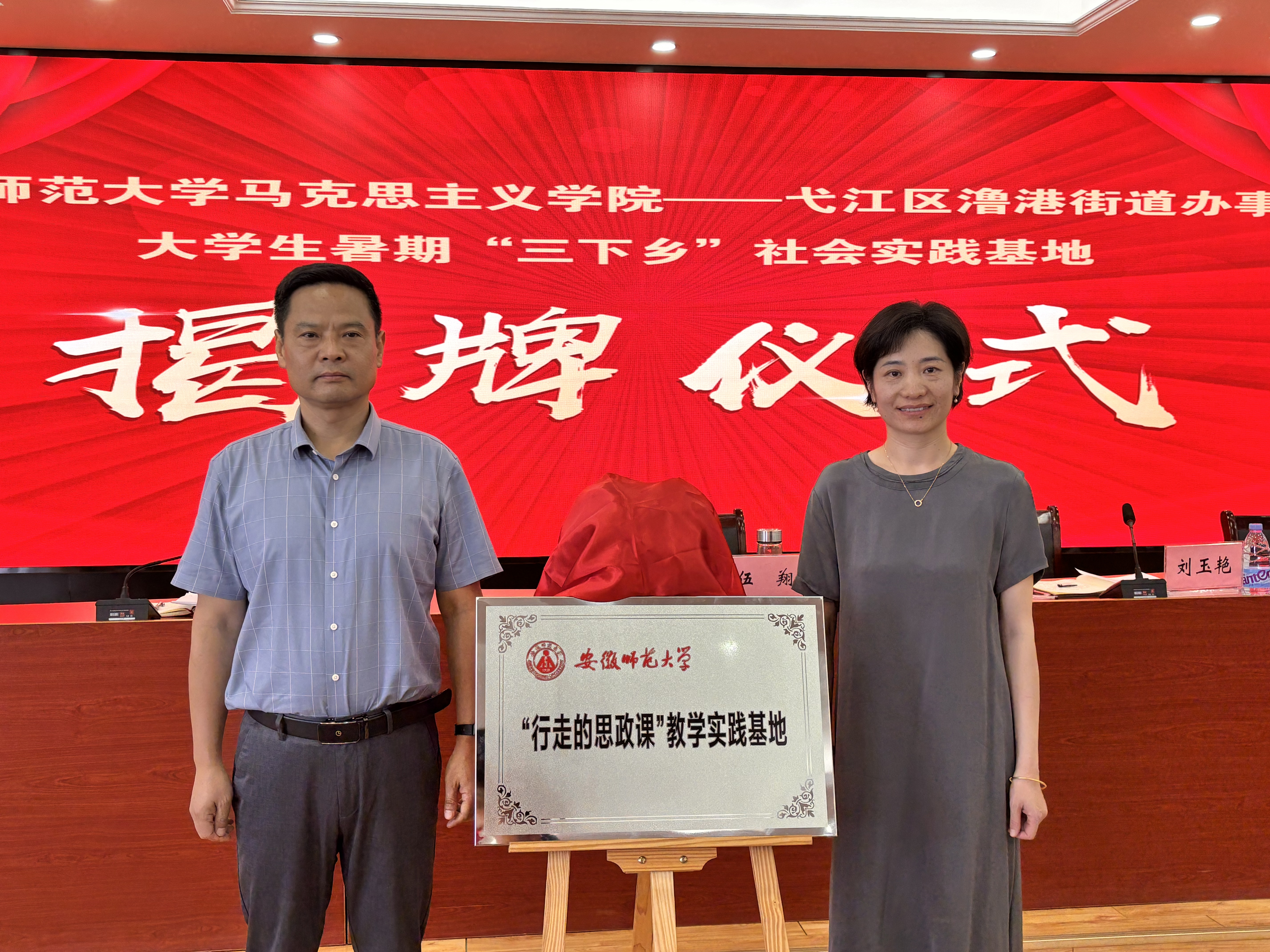 7月3日下午,beet365与芜湖市弋江区澛港街道举行“行走的思政课”教学实践基地揭牌仪式。澛港街道党工委书记伍翔、党工委委员金平、党建办主任刘涛、副主任史佳璐、公司党委副书记刘玉艳、团委书记陶娴静及暑期社会实践团队成员参加。