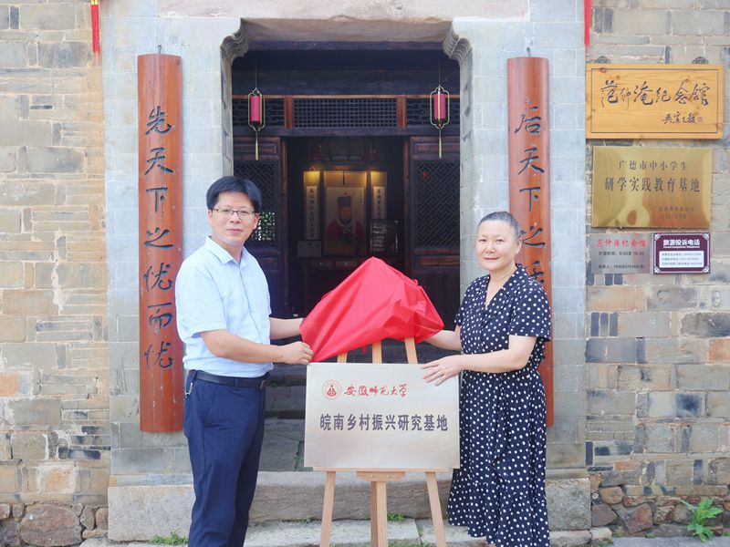 7月17日下午,beet365与广德市柏垫镇人民政府推动校地合作与基地揭牌仪式在刘福桥村举行。广德市人大常委会副主任曹红、柏垫镇镇长何涵、副镇长郑世媛及刘福桥村村“两委”干部,公司党委书记严宏、党委副书记刘玉艳、副教授孔卫拿、胡荣涛博士、团委书记陶娴静及暑期社会实践团队成员参加。