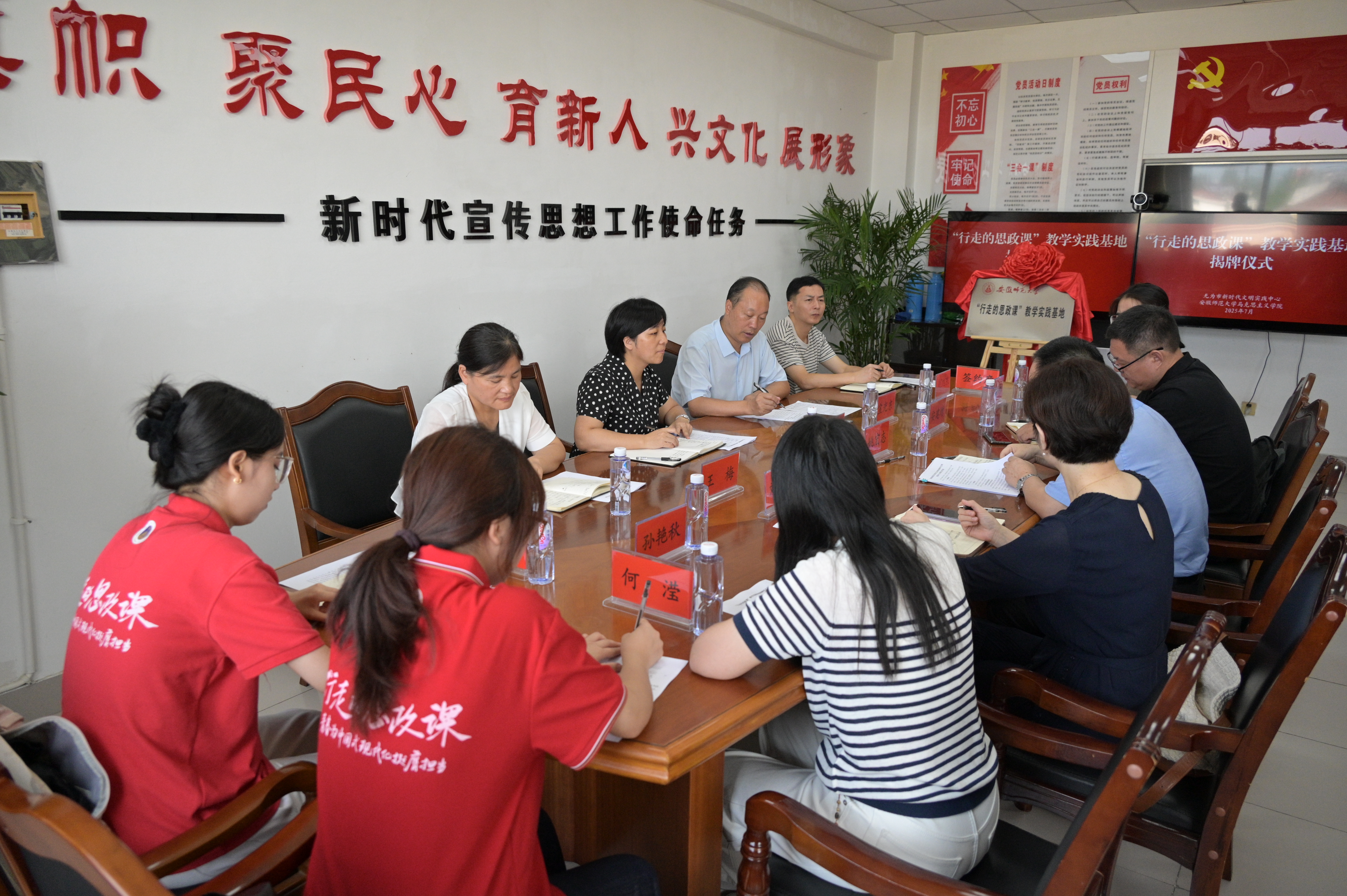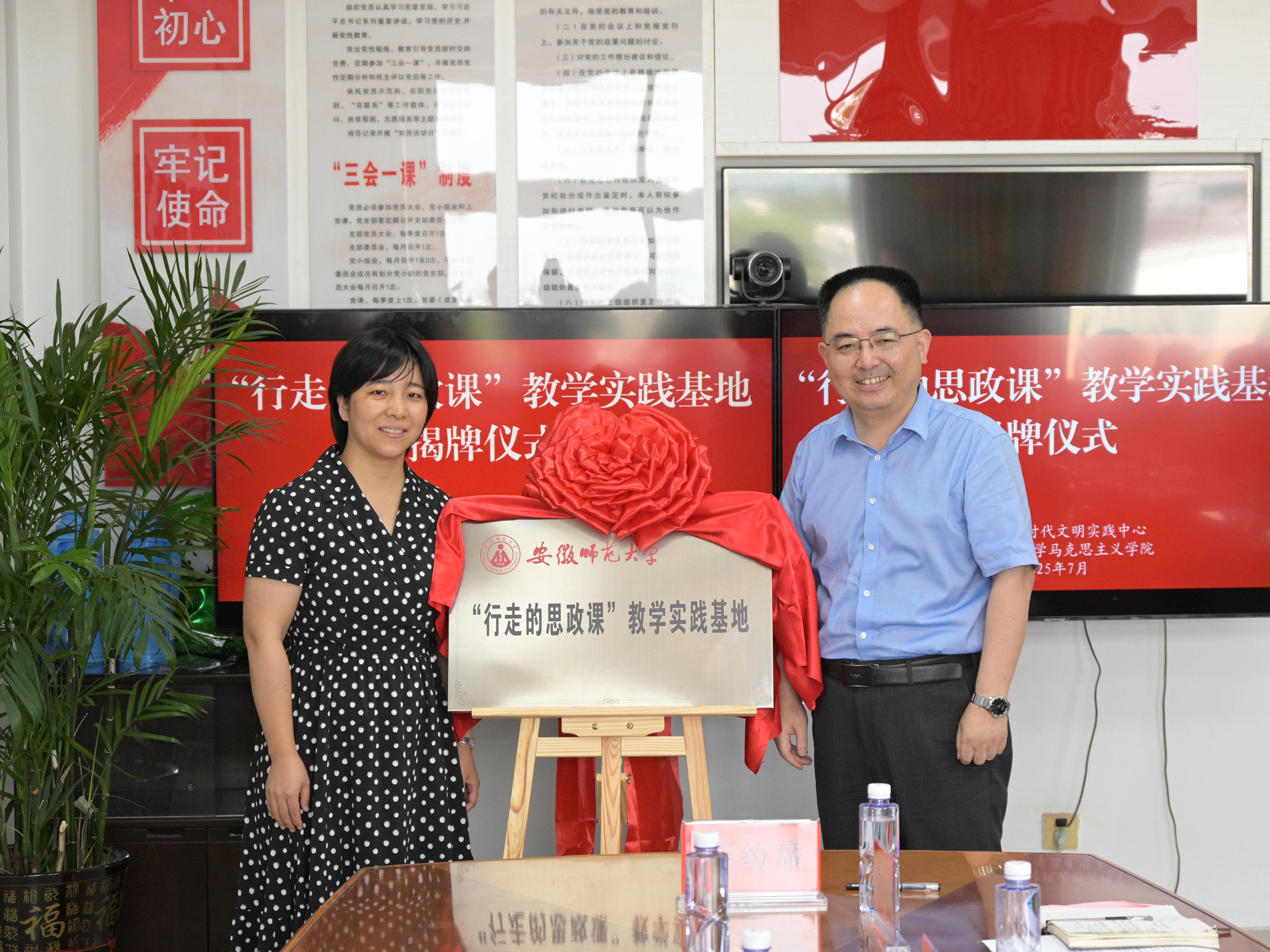 7月17日上午,beet365与无为市新时代文明实践中心举行“行走的思政课”教学实践基地揭牌仪式。中共无为市委常委、宣传部部长袁玉琴、马克思主义公司经理姚宏志、党委副书记刘玉艳等领导出席。