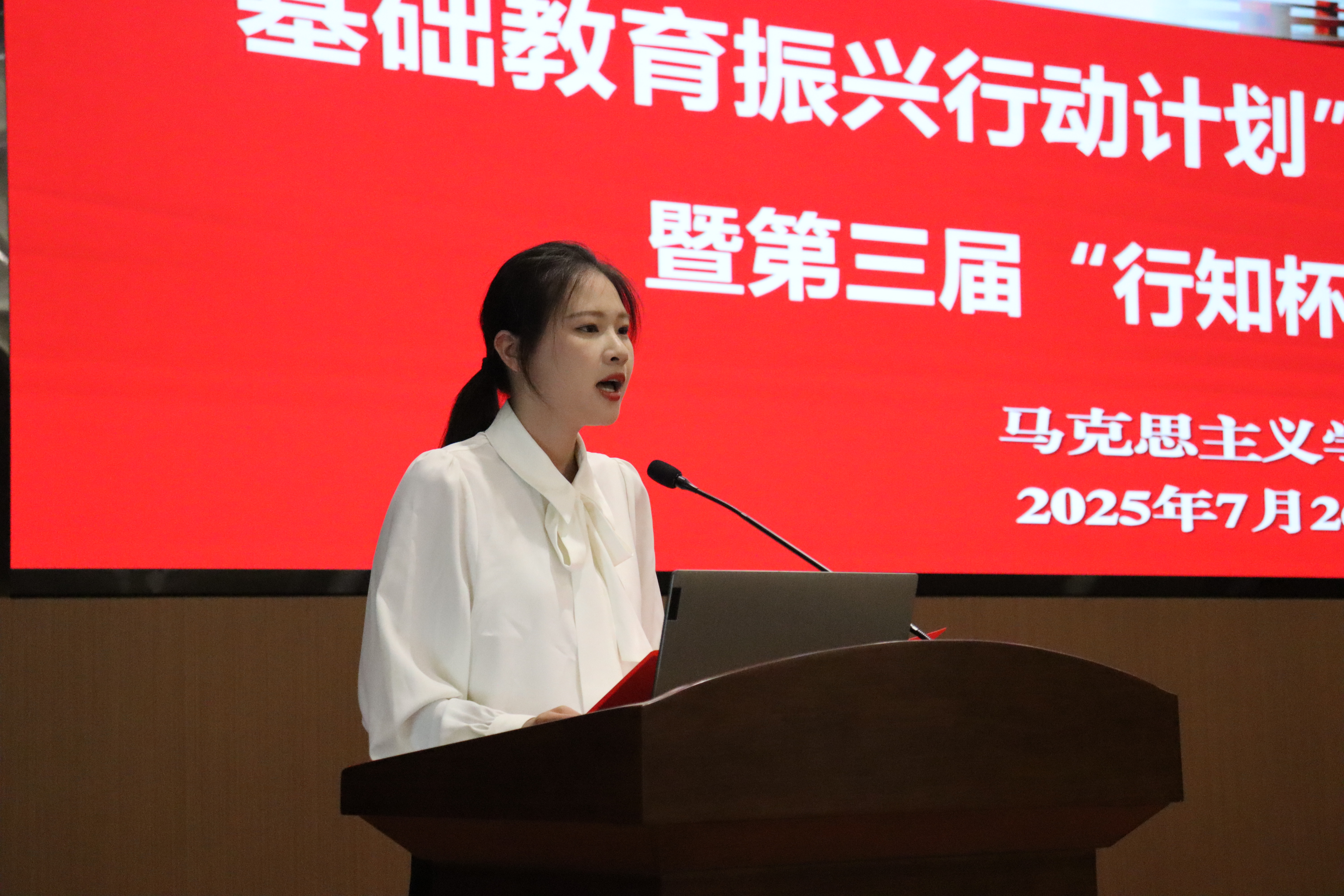 本科生代表盛文娟从自己“学知识”到“学教知识”角色转变方面分享暑假小学期的收获,讲述自己在教师讲解和教学实训方面的成长,并号召同学们努力成为能站稳讲台,温暖员工的“四有”好老师。研究生代表李维一从理论学习的滋养、实践历练的成长、平台与师长的助力三个方面讲述暑期小学期所带来的感悟和收获。她表示会继续锤炼育人本领,做教学艺术的执着追求者。