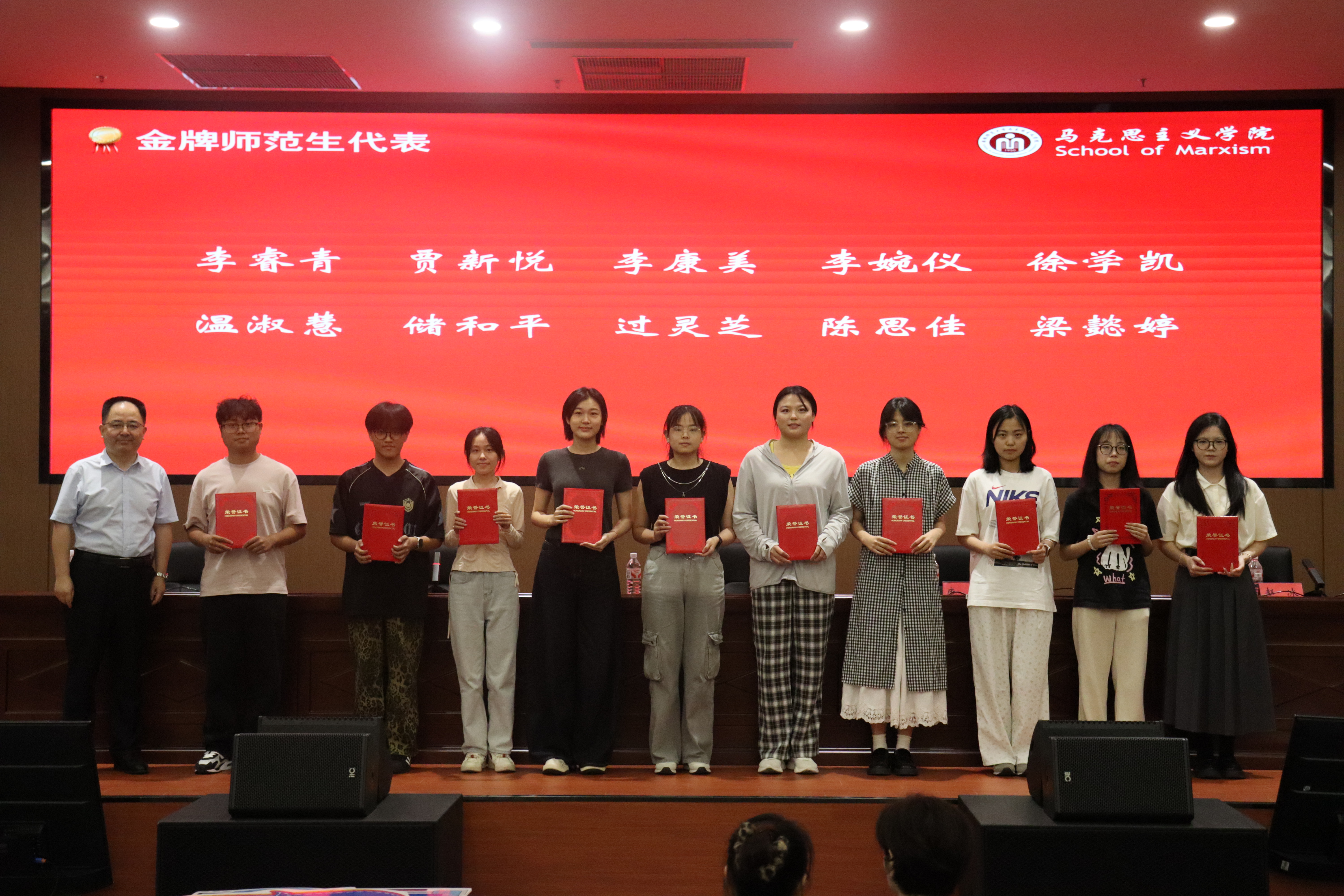 随后,公司领导老师和特聘教授为在校院两级“行知杯”素质展评系列活动中获奖同学和获得第二届金牌师范生的员工代表颁奖。