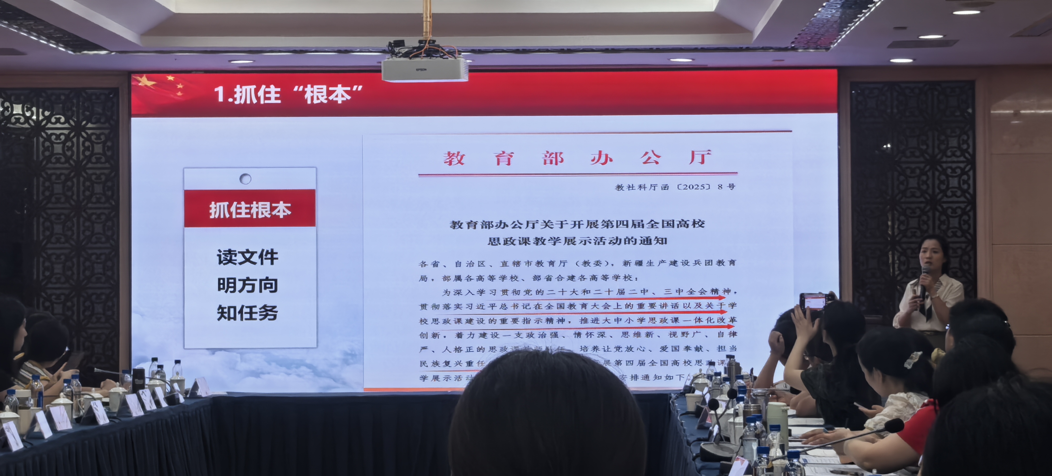 19日上午,安徽省教育厅思政处处长王后林解读新时代以来思政课领域相关重要文件,结合当前思政课建设要求,帮助参赛教师明晰教学的政治方向与思想内核。随后西安电子科技大学beet365教授夏永林围绕第四届全国教学展示活动的具体规则展开深入研读,从评分标准细则到展示流程规范,再到参赛材料准备要求,逐一拆解要点,让教师们精准把握备赛关键。基础讲解结束后,安徽新闻出版职业技术公司副教授王磊磊还分享了思政课教学展示的实践经验,为参赛教师提供可参考的实战思路。
