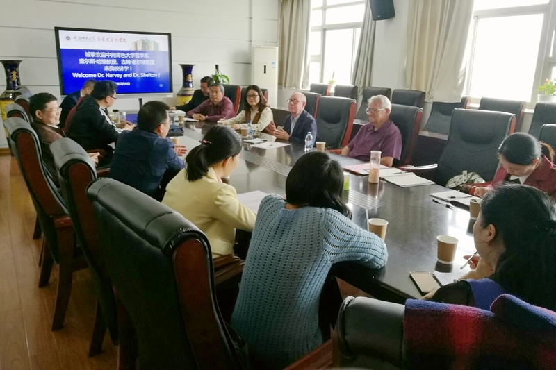 本网讯(文/彭泳力 摄/彭泳力 )5月6日上午,美国中阿肯色哲学系查尔斯·哈维教授和吉姆·谢尔顿教授应邀在公司五楼会议室参加“中阿肯色大学·beet365官方网站beet365教师座谈会”。本次讲座由王习胜教授主持,管月飞副教授担任翻译,思想政治教育与伦理学课程组、哲学课程组的部分教师参与了此次座谈会。