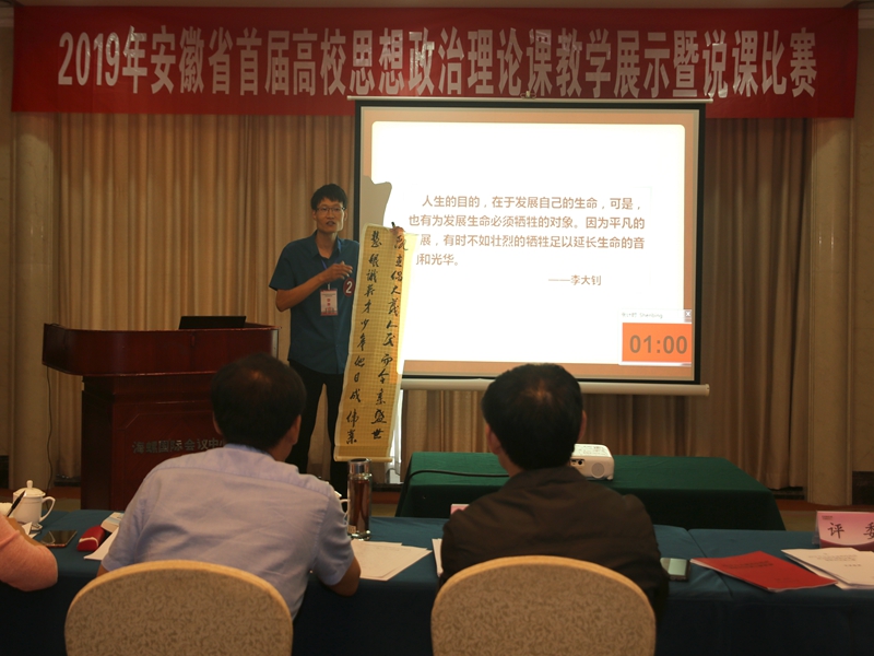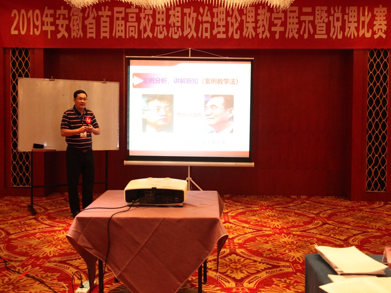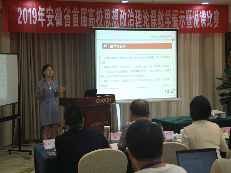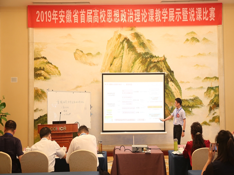 本网讯(安徽省高校思想政治理论课教师培训基地)为深入学习贯彻习近平新时代中国特色社会主义思想和党的十九大精神,贯彻全国全省公司思想政治理论课教师座谈会精神,切实加强高校思想政治理论课建设,进一步提高高校思想政治理论课教师教学水平和教学质量,由中共安徽省委教育工委、安徽省高校思想政治理论课教学指导委员会、安徽省高校思想政治教育研究会联合举办,安徽省高校思政理论课教师培训基地承办的2019年安徽省首届高校思想政治理论课教学展示暨说课比赛顺利开展。
