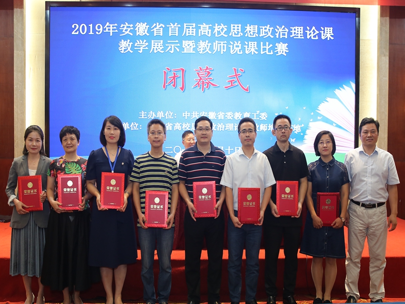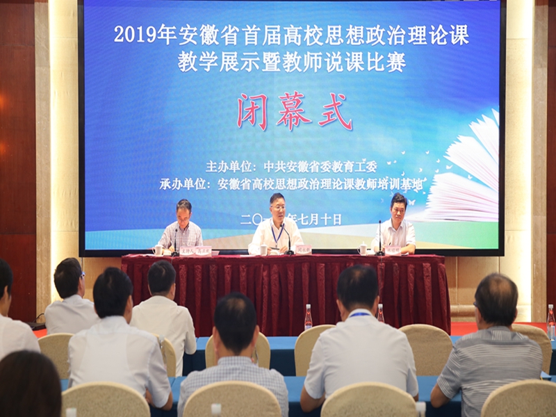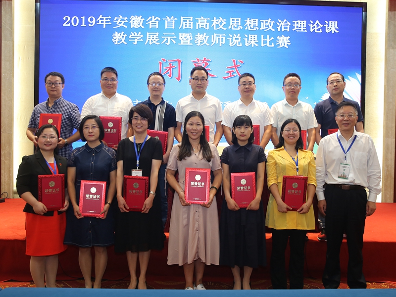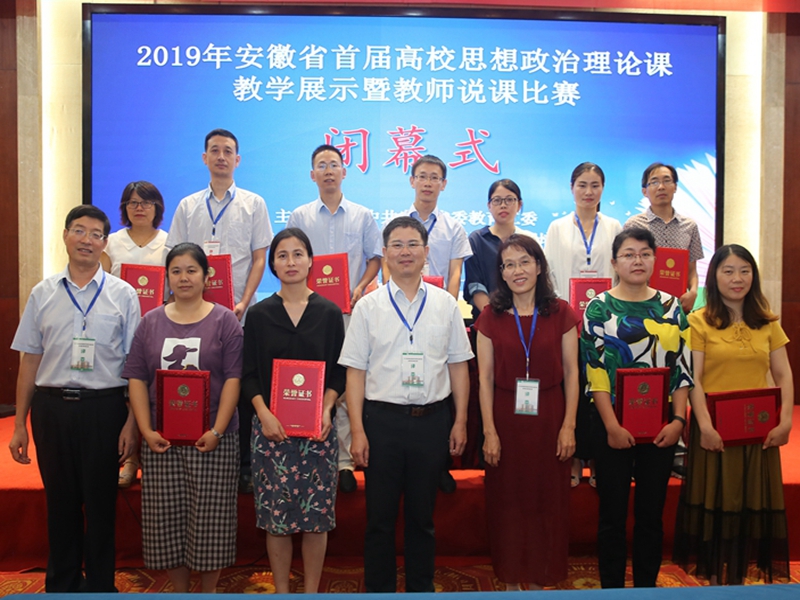 经过紧张激烈的角逐,经过评审委员会研究决定,本次比赛评出一等奖10名,二等奖16名,三等奖21名,优秀奖若干名,安徽省教育厅思政处林禄明副处长莅临闭幕式并为获奖选手颁奖。中共安徽省委教育工委将根据本次比赛结果择优确定安徽省参加首届全国高校思想政治理论课教学展示活动的选手推荐名单。