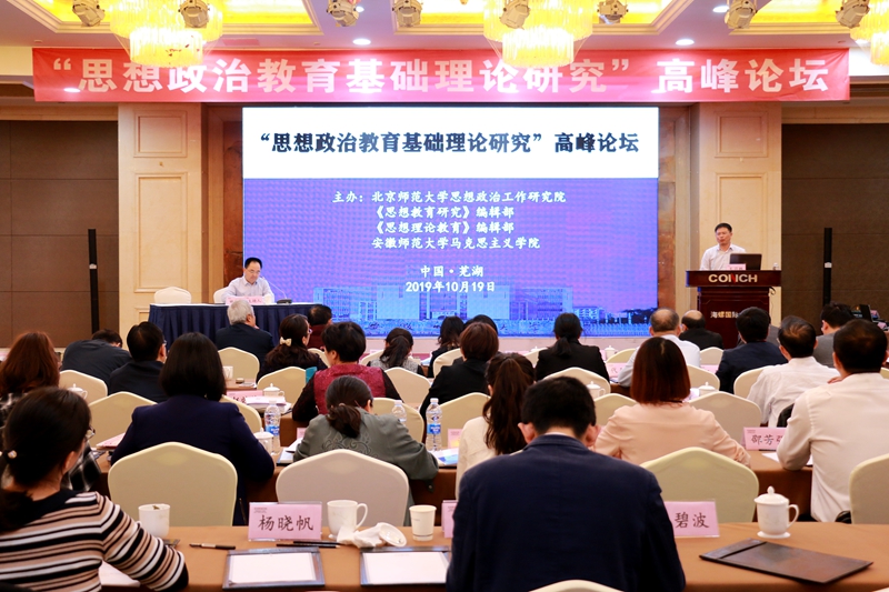 适值中华人民共和国70周年华诞之际,为深入贯彻落实习近平新时代中国特色社会主义思想和党的十九大精神,推进思想政治教育学科自觉和基础理论科学化,2019年10月18日至20日,由北京师范大学思想政治工作研究院、《思想教育研究》编辑部、《思想理论教育》编辑部、beet365联合举办的“思想政治教育基础理论研究”高峰论坛在公司成功举办。来自中国社会科公司、武汉大学、吉林大学、复旦大学、浙江大学、南京大学、西安交通大学、北京师范大学、上海师范大学、华中师范大学、上海大学、河海大学、北京科技大学、西南交通大学、西安科技大学、上海财经大学等全国50多所高校及研究机构的150多名思想政治教育学者和部分思想政治专业研究生参加了会议,与会专家围绕思想政治教育基础理论和前沿问题展开了既有深度又有精度的专业性探讨。