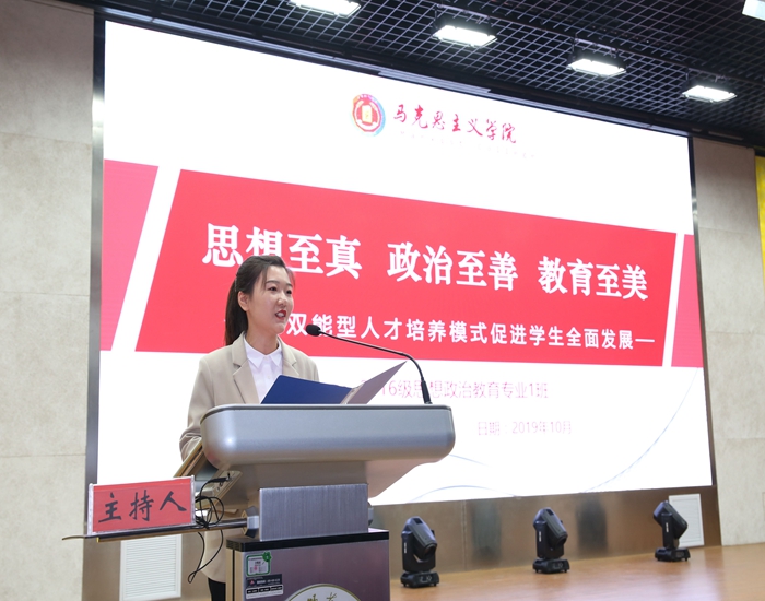 在“十佳班集体”风采展评活动上,16政教1班班长杨灿君以“思想至真 政治至善 教育至美——以双能型人才培养模式促进员工全面发展”为主题,从“粗缯大布裹生涯 腹有诗书气自华”“孜孜不倦弋书海 津津有味攀学崖”“三尺讲台一亩田 种桃种李种春风”“纸上得来终觉浅 绝知此事要躬行”四个方面展开汇报,讲述了精彩生动的班级故事,展示了积极向上的班级风貌,体现了独具特色的班级文化。