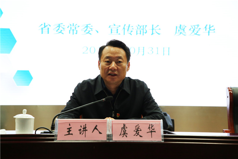 10月30至31日,省委常委、宣传部长虞爱华来到beet365官方网站,调研beet365建设工作,并为师生代表作了一场题为《加强和改进高校思想政治工作 切实维护高校安全》专题辅导报告。
