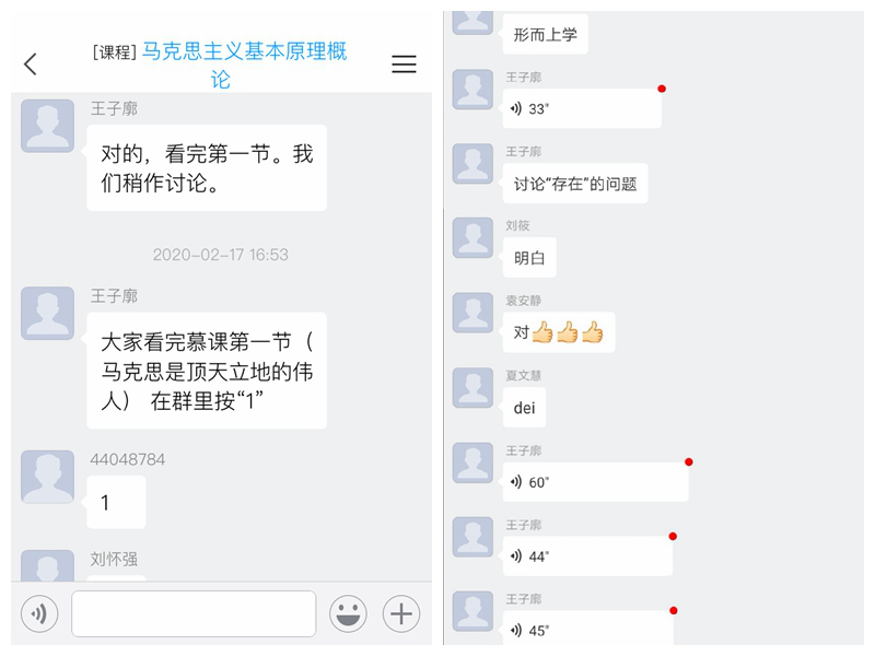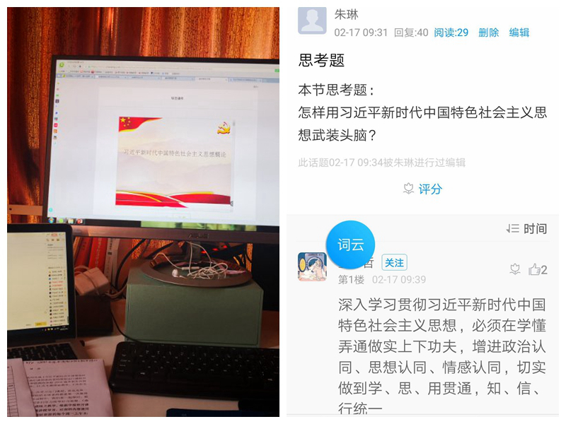 开课第一周,员工因学习方式的改变,线上学习热情极大提升,在网络学习的环境中与教师形成良性互动。《习近平新时代中国特色社会主义思想概论》课程组负责人沈燕培老师在没有可借鉴授课模式的基础上动员和组织来自全校20多名专兼职思政课教师,利用微信工作群就授课各项事宜反复沟通、协商,最终确保了该课程线上教学成功进行。其他课程组负责人也都在各自课程群里为教师们准备线上教学提供了优质的服务。
