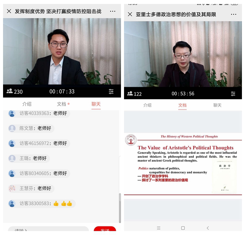 此次直播示范课主题鲜明、内容科学、方法新颖、过程合理、示范明显。专辑由公司10位青年教师领衔主讲。其中,范敏、方敏、单传友、王瀛培、杨希、赵冰、高艳杰、佘君、张春光、王子廓分别主讲全校6门本科思政必修课和4门思想政治教育本科部分专业课。10个专题各具课程特色,选题设计注重立德树人、铸魂育人。各位老师围绕主题科学设计教学环节,运用多层次的教学方法展开教学;各专题之间衔接合理,循序渐进,有效调动了员工的积极性,在线随堂授课所显示的聊天和讨论区反映了员工参与度高、反响热烈。公司本科教学督导团和公司听课小组对本次直播示范课各个专题授课及时在线进行了认真听课和指导,并随后向授课教师反馈了肯定性评价和建议。
