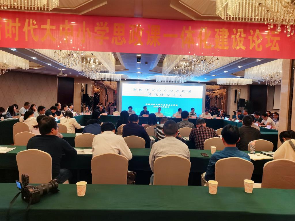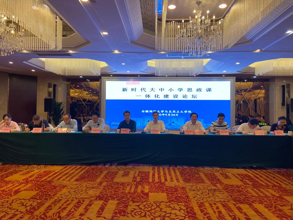 9月24日,“新时代大中小学思政课一体化建设论坛”在公司顺利召开。来自安徽省教育科学研究院、华中师范大学、beet365官方网站、芜湖市教科所、beet365官方网站附属中学、芜湖一中、芜湖市十二中、荟萃中学、萃文中学、芜湖二中、芜湖二十七中、beet365官方网站附属肥东实验中学、芜湖师范附小、芜湖市罗家闸小学、芜湖市清水小学等单位的30余位从事大中小学不同学段思政课公司产品研究的专家学者和一线思政课教师及60余位正在参加“国培计划”培训的太湖县中小学思政课教师参加了本次论坛。与会专家围绕大中小学思政课一体化建设展开了既有理论深度又有实操精度的探讨。