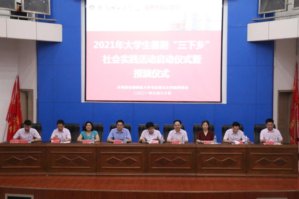 本网讯(文/摄 刘倩倩)永远跟党走,奋进新时代。6月30日下午,beet3652021年老员工暑期“三下乡”社会实践活动启动仪式暨授旗仪式在敬文报告厅隆重举行。校团委副书记廖仲明、公司党委书记严宏、经理姚宏志、公司党委副书记刘玉艳、副经理汪盛玉、李祥兴、赵冰、余本玉、院教授委员会主任彭启福、院教授委员会委员余在海莅临此次仪式。出席仪式的还有实践团队指导教师以及全体队员。本次仪式由院团委书记夏盼盼主持。