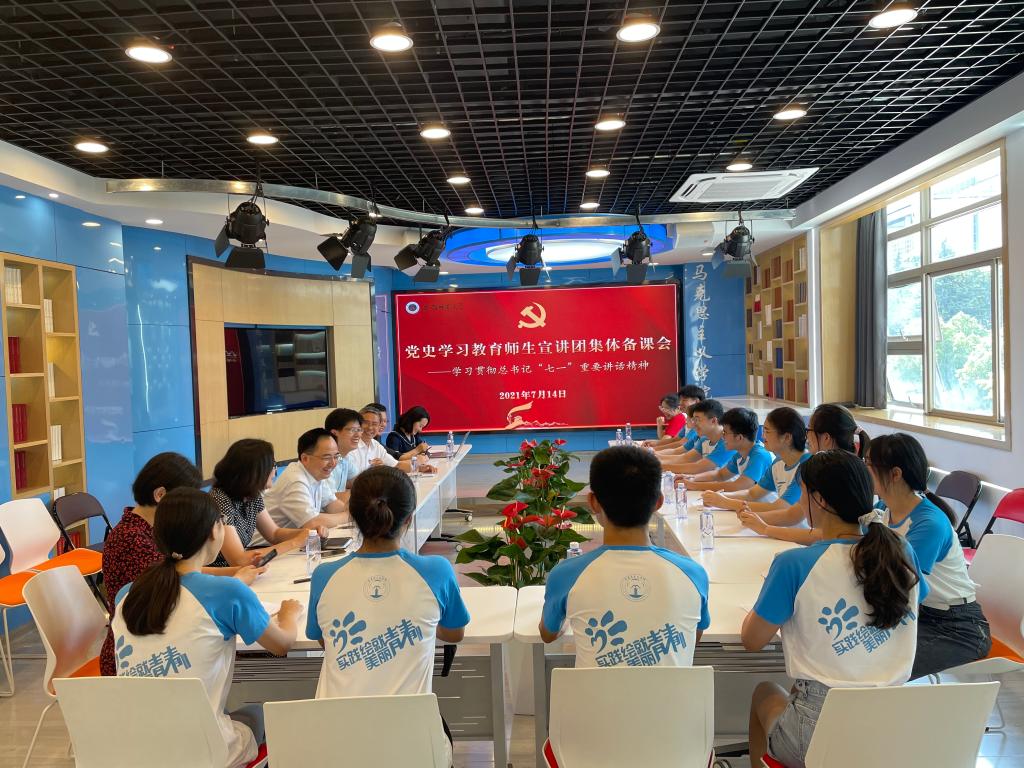 百年党史砥砺人心,理论宣讲传递力量。为更好地宣讲习近平总书记“七一”重要讲话精神,公司积极举行宣讲师生集体备课会,各宣讲团队备课会64次。7月14日下午,公司在皖南红色文化虚拟仿真实训中心举办了以学习习近平总书记“七一”重要讲话精神为主题的党史学习教育师生宣讲团第三次集体备课会。备课会上,理论宣讲团指导教师沈燕培立足自身工作实际,给宣讲团进行了示范宣讲。宣讲团成员就指导教师的示范宣讲进行交流。