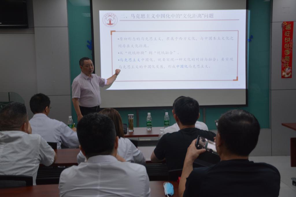 为确保宣讲效果,部分指导教师跟随宣讲员深入社区、企业开展宣讲示范。在旌德,公司党委书记严宏教授以《中国共产党人的精神谱系解读》为题,从伟大建党精神这一源头出发,回溯了一系列伟大精神所产生的历史背景、形成过程和时代意义;院教授委员会主任彭启福教授赴安徽医科大学第一附属医院从诠释学的涵义入手,阐述了理论结合实际和马克思主义原理与中国实际结合的合理性。路丙辉教授赴繁昌板子矶阐释了习近平总书记“七一”重要讲话精神的重大意义、主要内容和丰富内涵;崔明海副教授为宣讲队员线上解读“七一”重要讲话精神要点;佘君副教授以“改革开放是决定当代中国命运的关键抉择”为题作示范宣讲。